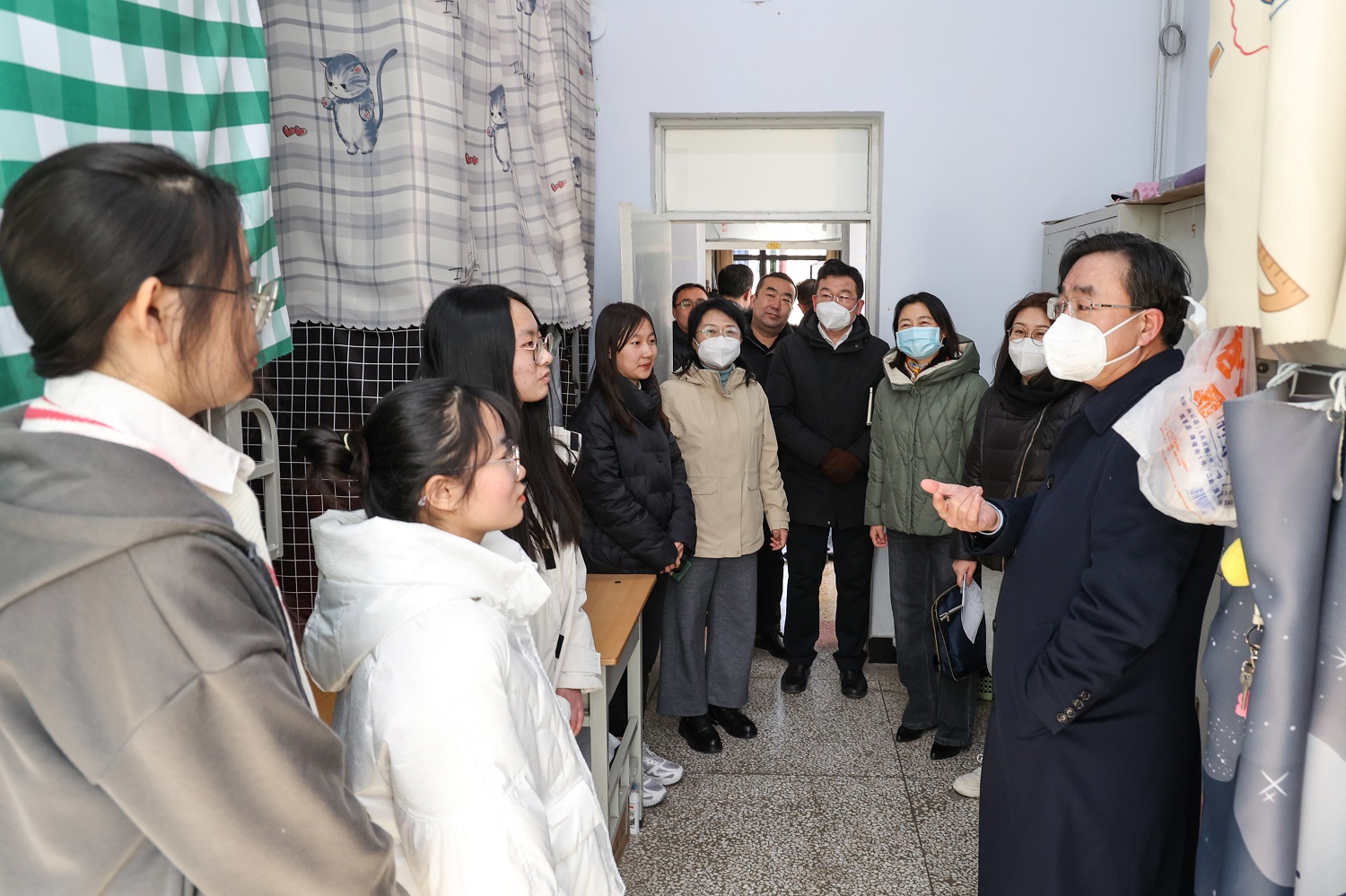 春雪迎春回,同大学子归。2月18日、19日,在春季学期同学们返校报到的日子,校党委书记赵水民,校党委副书记、校长姚丽英分别带队调研指导开学准备工作,查看学生返校报到情况并看望慰问师生。校党委常委、副校长张旻,校党委常委、副校长石凤珍,校党委常委、副校长雷建设,以及相关部门单位负责人陪同调研。