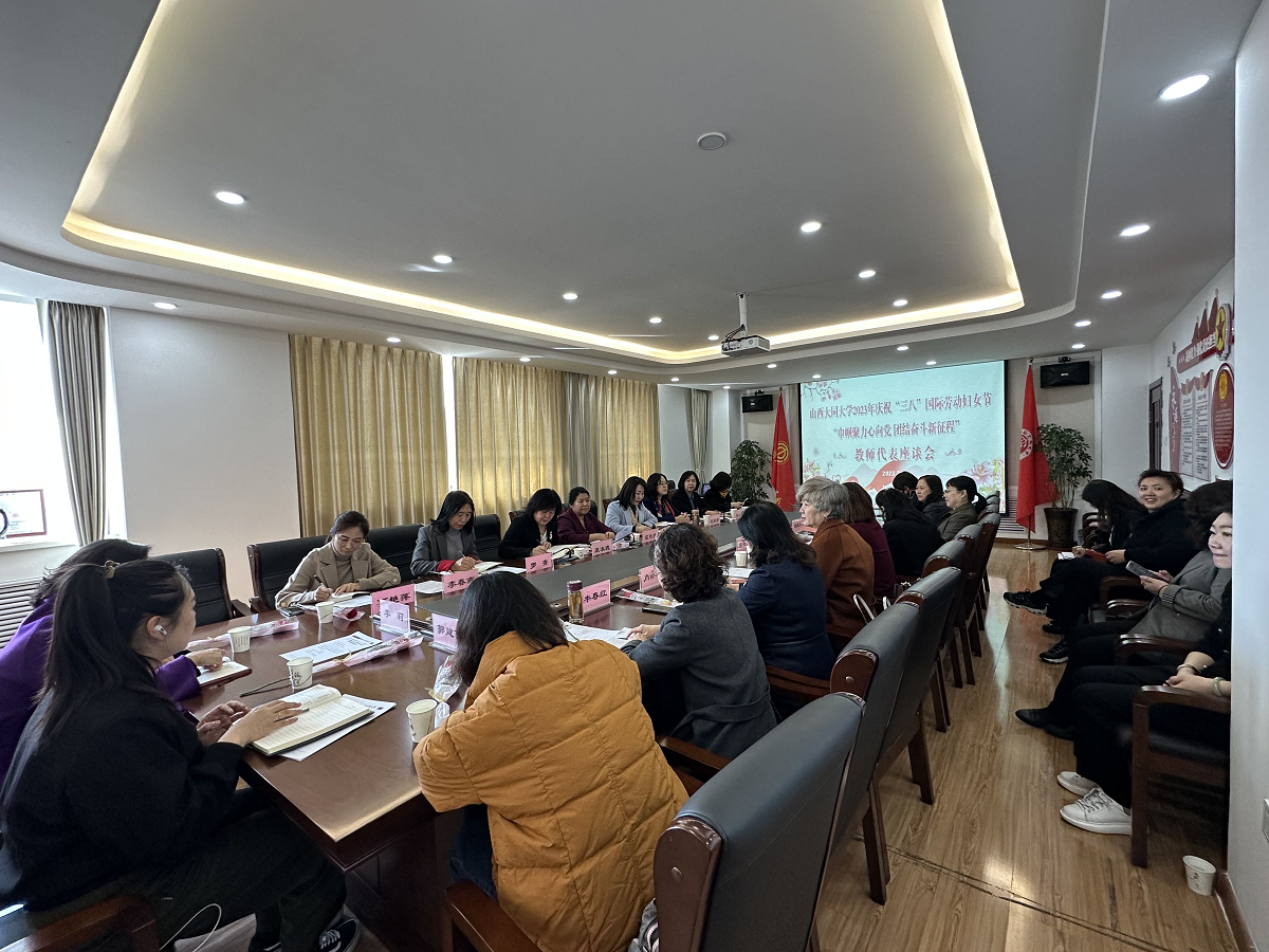 3月8日上午,校工会在行知楼14层工会会议室召开庆祝2023年“三八”国际劳动妇女节“巾帼聚力心向党 团结奋斗新征程”教师代表座谈会。校党委常委、副校长石凤珍出席。来自各学院教师代表,国家、省一流课程、2022年青年教师教学竞赛优秀选手代表、优秀创新工作室获得者、指导学生参加国家级大创比赛获奖的指导教师、退休教师代表和辅导员代表共18位优秀女教职工参加了座谈会。校工会主席侯桂兰主持座谈会。