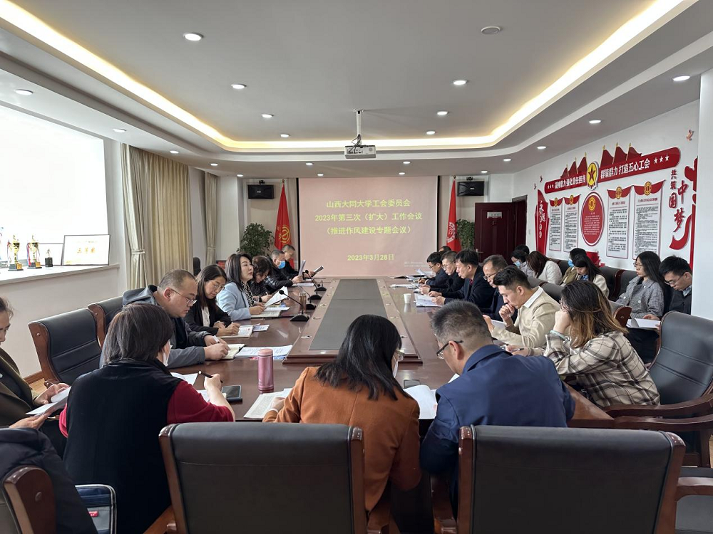 3月28日下午,校工会委员会2023年第三次(扩大)工作会议——推进作风建设专题会议在行知楼十四层工会会议室召开,工会委员会委员、各分工会主席、校工会经审委委员和校工会工作人员参加会议,校工会主席侯桂兰主持会议。