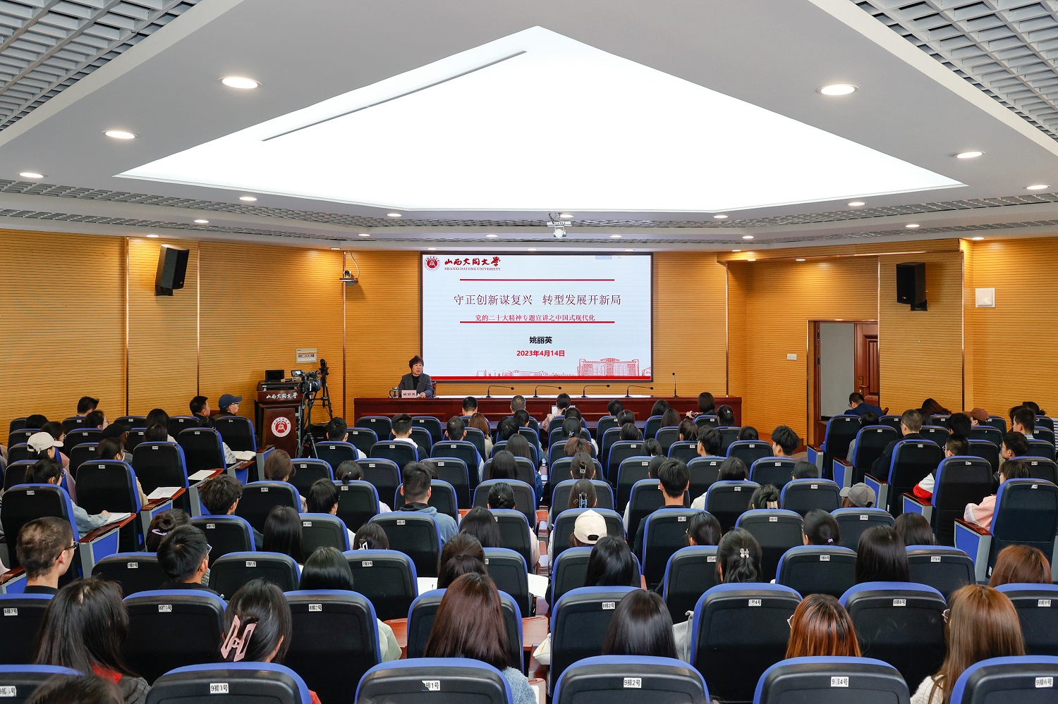 姚丽英围绕“党的二十大报告关于中国式现代化的重要论述”“中国式现代化的山西‘转型故事’”“中国式现代化的太原、大同‘双城记’”这三个重点,阐述了推进中国式现代化是一项前无古人的开创性事业,必然会遇到各种风险挑战、艰难险阻甚至惊涛骇浪,必须增强忧患意识,坚持底线思维,居安思危、未雨绸缪,敢于斗争、善于斗争,通过顽强斗争打开事业发展新天地。她紧密结合青年学生的思想实际、学习实际和生活实际,激励全体教师要把党的二十大精神落实到高等教育发展各方面、全过程,坚持为党育人、为国育才,激励同学们要牢记奋斗历程,担当历史使命,立志做有理想、敢担当、能吃苦、肯奋斗的新时代好青年。