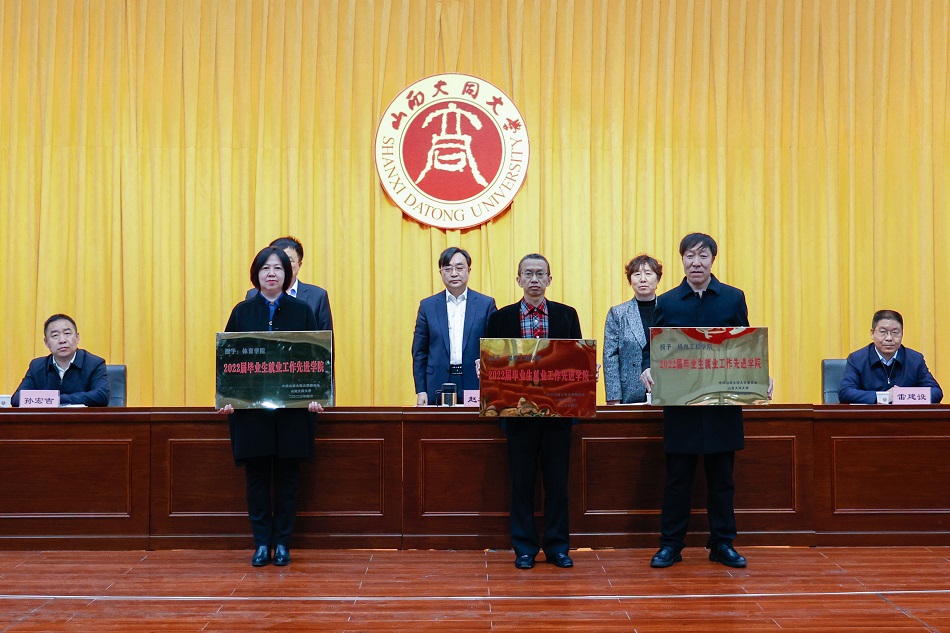 会议表彰了2022届毕业生就业考核工作先进学院,并为煤炭工程学院、机电工程学院、体育学院等三个学院颁奖。
