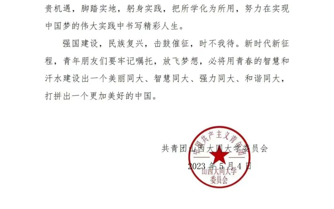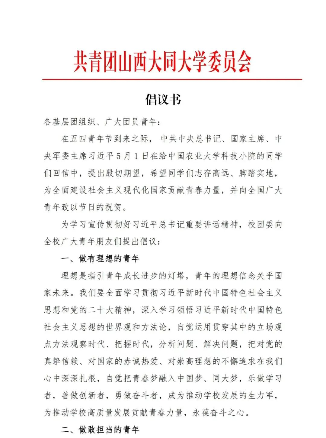 校团委认真组织团学青年学习回信精神,并向全校青年学生发出倡议书。