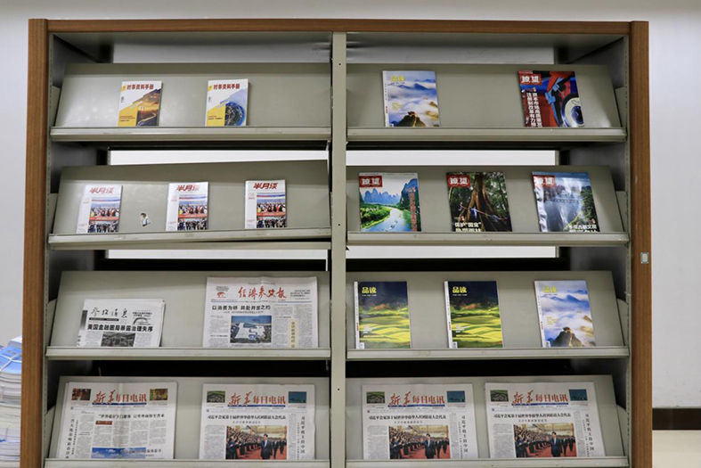 校图书馆里的新华社报刊展