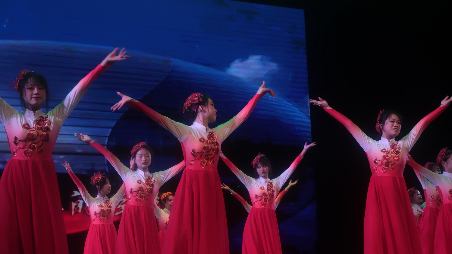 商学院的红舞《不忘初心》用红色的激情点燃青春的旋律。舞者用曼妙的舞姿调动了开场的气氛,带动了现场观众的热情。她们优美且坚定的舞步彰显了新时代中国青年对“万水千山不忘来时路”的坚守;体现了当代青年接过时代的接力棒,做时代前列的奋斗者、开拓者、奉献者的决心。