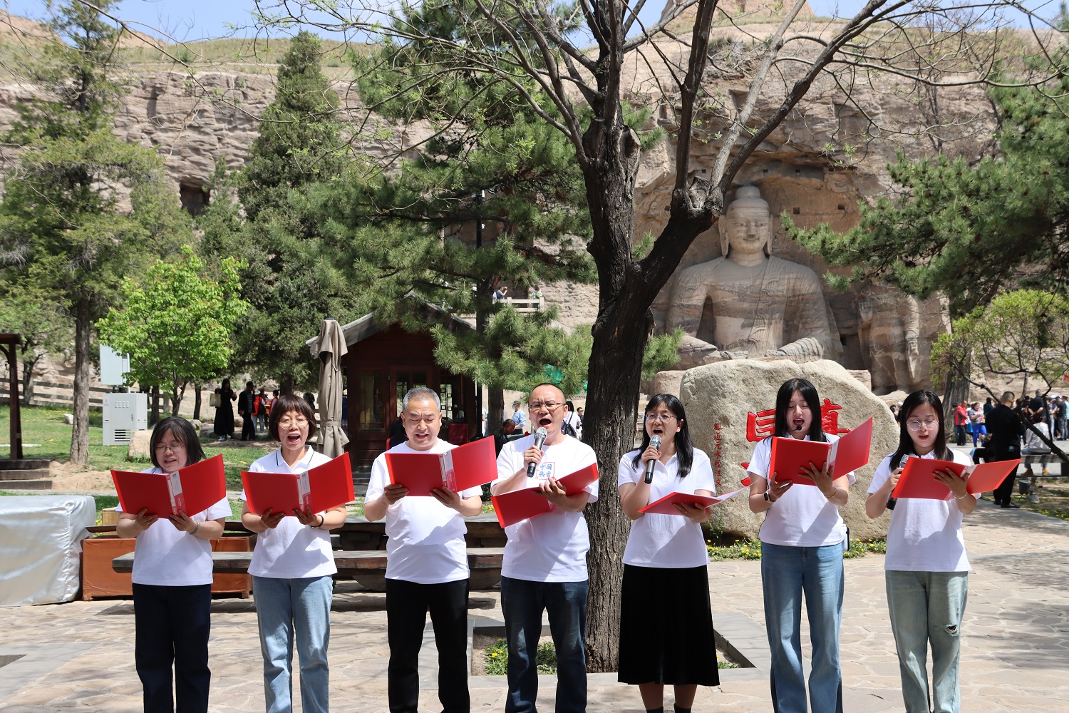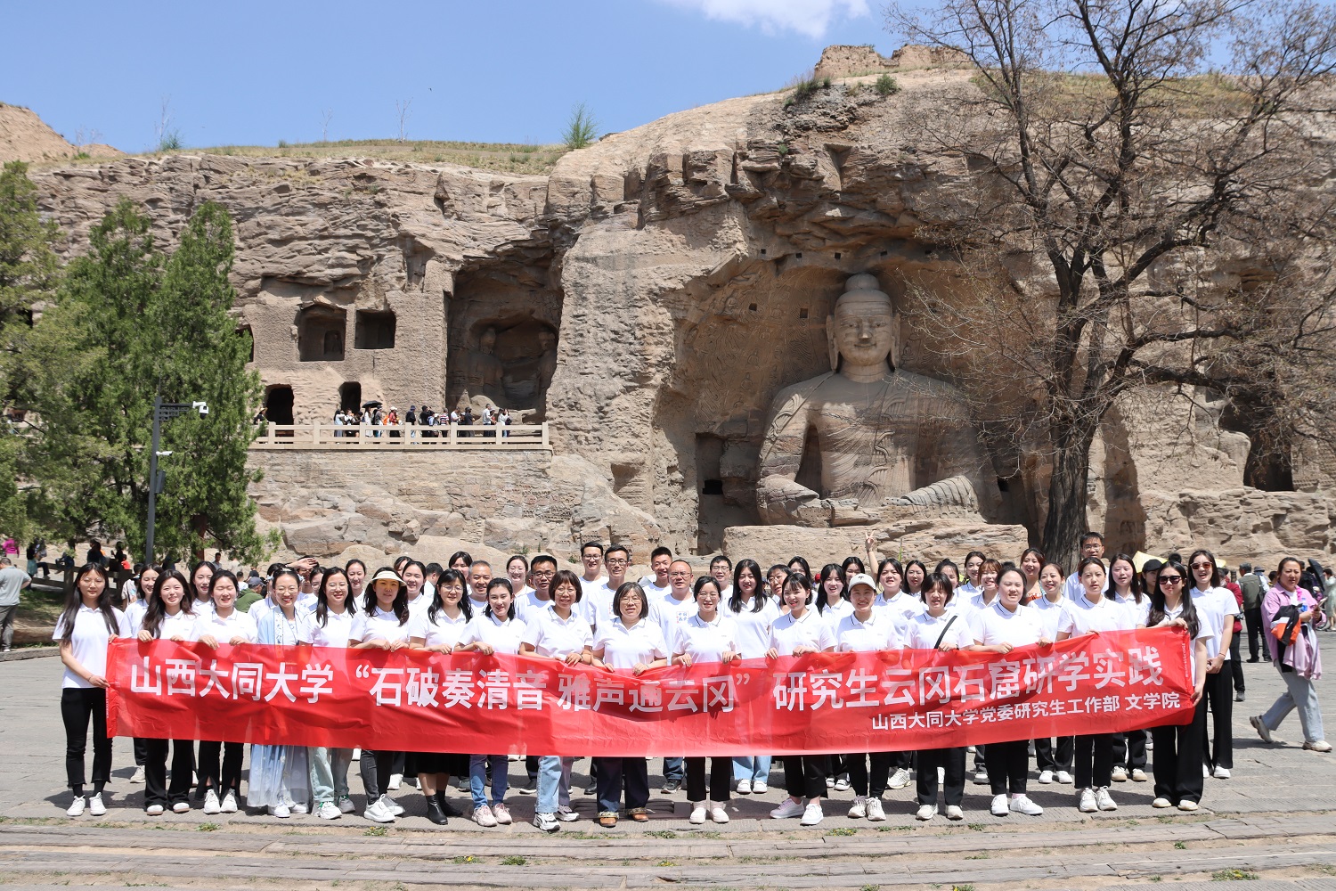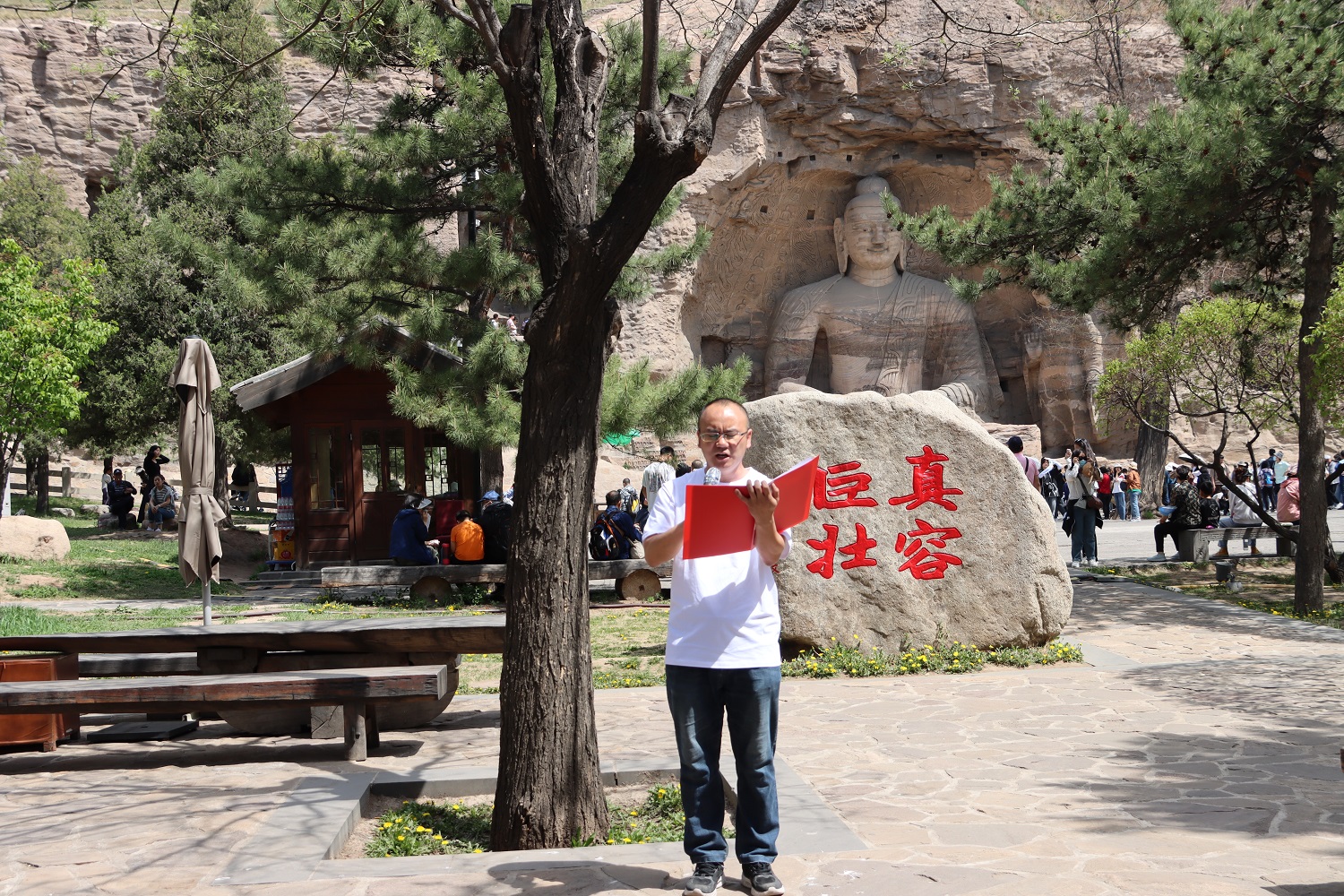 在全校深入开展学习贯彻习近平新时代中国特色社会主义思想主题教育之际,5月14日,党委研究生工作部和文学院在云冈石窟成功举办“石破奏清音,雅声诵云冈”研究生云冈石窟主题研学实践活动。活动旨在加强研究生思想政治引领,突出中国语言文学学科研究生培养专业特色,引导研究生主动参与主题教育,深入学习贯彻习近平总书记视察云冈石窟重要指示精神,增进研究生了解、传承、研究、弘扬云冈文化的使命担当。党委研究生工作部部长白昕,副部长张继红、苏新武及部门其他人员,文学院副院长刘世明、部分研究生导师代表以及研究生代表共50余人参加活动。