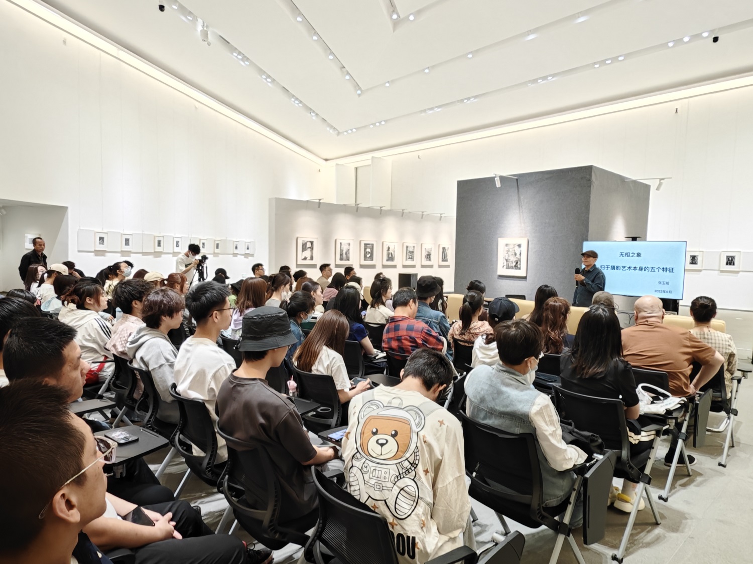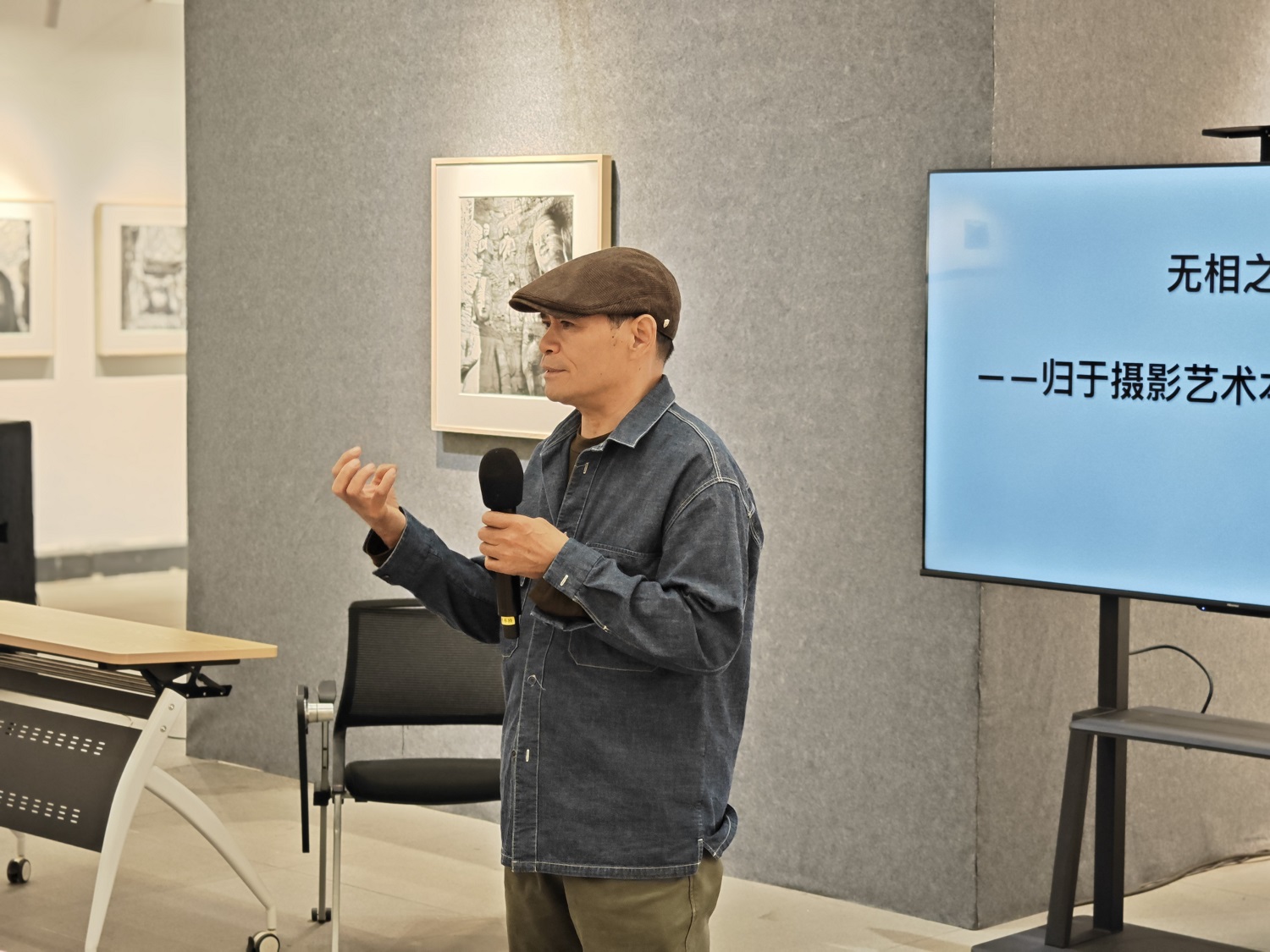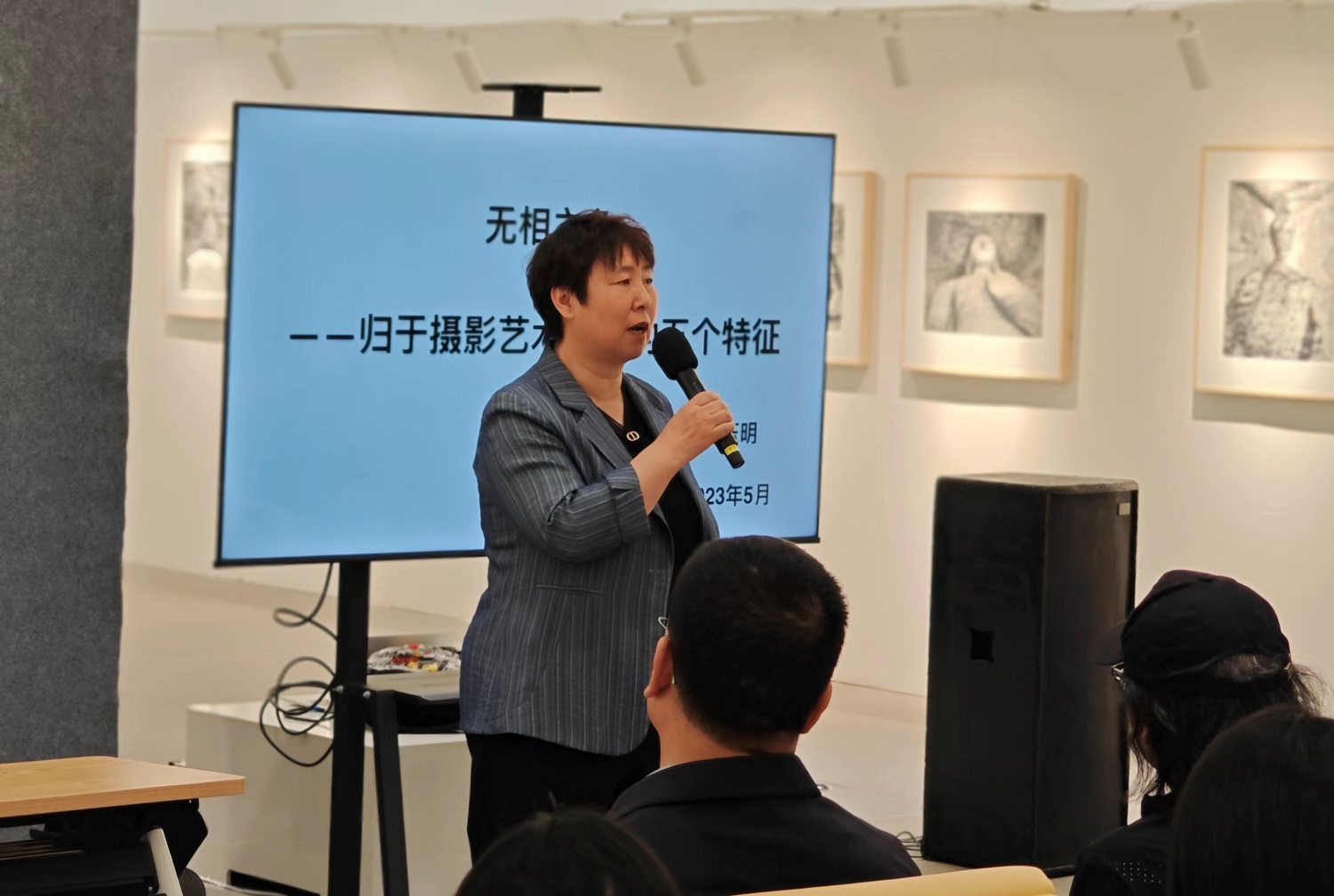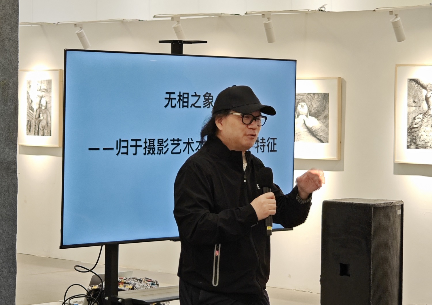 张玉明的讲座《无相之象——归于摄影艺术本身的五个特征》从被称为美国当代摄影家萨考夫斯基提出的“它本身、框取、细节、时间、优势点”5个摄影艺术共同特征入手,深入分析了摄影语言作为艺术与哲学的内在关联。他认为,照片和照片上的事物之间的联系是不确定的,因为它印证的是艺术家的内心。摄影家的信息纯粹是视觉化的,“照片中表现的任何含义只能看不能说”;不相干的事物框取在一个画面内也能产生新的象征,这就是其框取的作用和意义所在;由形状、线条、明暗、质感、趣味中心组成的“细节”,是拍摄对象“固有”的,而不是像绘画那样是“给予”的;照片是对时间流的截取,也就是某个时间段的表达;其“优势点”在于把俯视与仰视、长焦与广角、隐藏在影子里,通过玻璃的反光,带给我们不同凡响的摄影经验。