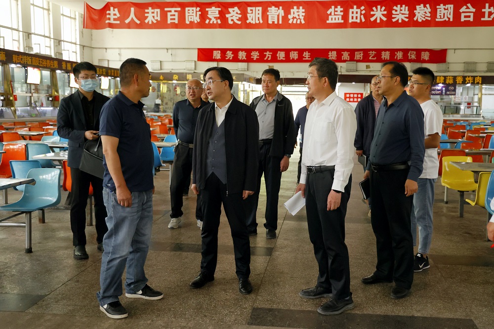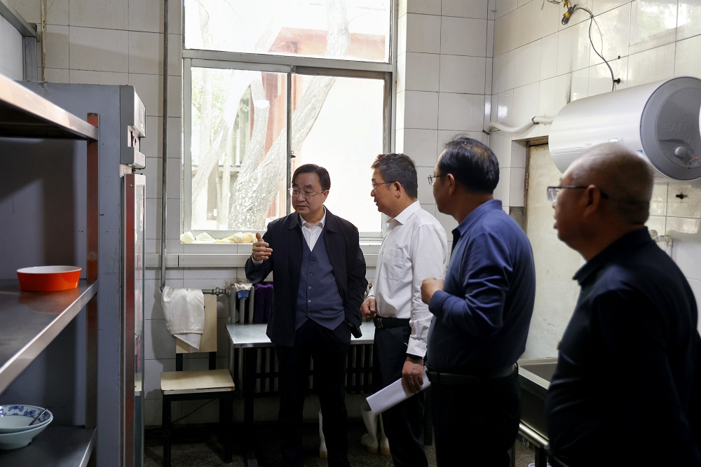赵水民一行首先深入新平旺校区各食堂,详细了解查看食材采购、食品储存、加工制作、食品留样、餐具消毒、卫生清洁等情况,就做好食品安全工作提出具体要求。他指出,食品安全事关师生身体健康和生命安全,容不得半点马虎,要深入学习贯彻习近平总书记关于食品安全工作重要论述,加强食品安全监管力度,把好食品安全源头关。保障食品安全是一项重要民生工程、良心工程,要始终坚持“师生至上、生命至上”工作理念,严格落实食品安全“两个责任”机制,建立健全“从源头到餐桌”的全链条食品安全监管体系,强化底线思维,压实工作责任,狠抓执行落实,用心用情用力守护好师生“舌尖上的安全”。