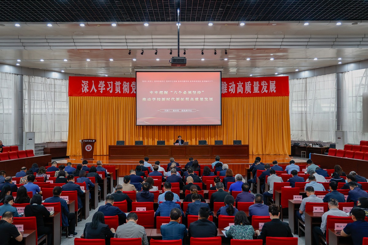 赵水民最后强调,我们必须以“六个必须坚持”不断武装头脑,正确认识把握习近平新时代中国特色社会主义思想的核心要义和精神实质,真正将新思想的伟力转化为实践的力量、奋斗的源泉;必须以“六个必须坚持”不断推动实践,自觉运用科学的世界观和方法论分析问题、指导工作,以坚定的人民立场服务师生,以自信自立的姿态直面风险挑战,以守正创新的自我要求推进工作,以鲜明的问题导向破解发展难题,以系统观念和系统思维不断深化改革,以胸怀天下的气魄不断加大开放办学力度,在建设高水平应用型大学的道路上奋勇前进!(文/张宁 图/余致楠)