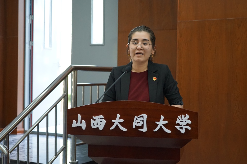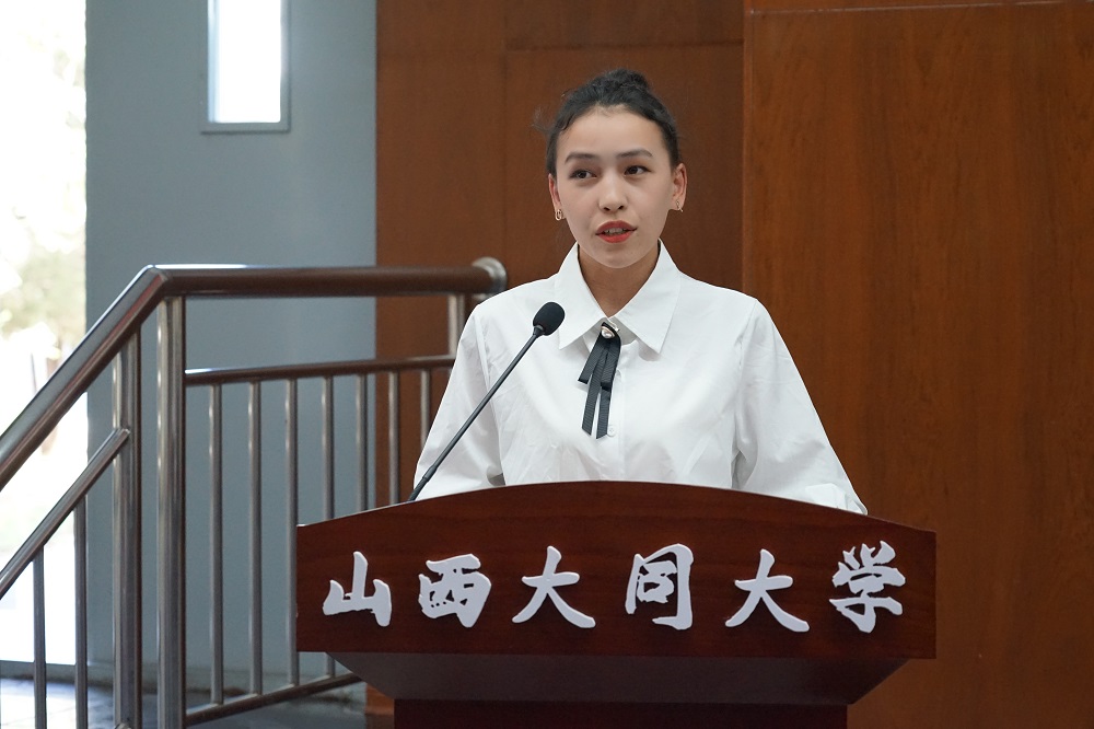 辅导员代表迪丽拜尔·阿力甫、学生代表阿依佐热·艾妮瓦尔分别发言,分享了她们在民族团结教育工作和在校学习的幸福经历与真挚情感,表达了对今年会民族工作成果的高度评价以及对民族团结一家亲的认同。