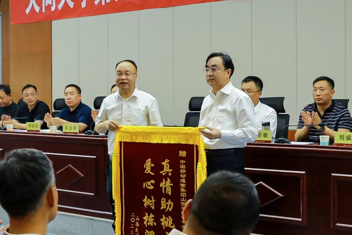 本次活动得到了中国移动通信集团山西有限公司云冈区分公司大力支持,为今年会民族学生捐赠了400多本励志图书,为表示对捐赠的感谢,校党委书记赵水民代表学校向中国移动通信集团山西有限公司云冈区分公司赠送锦旗。