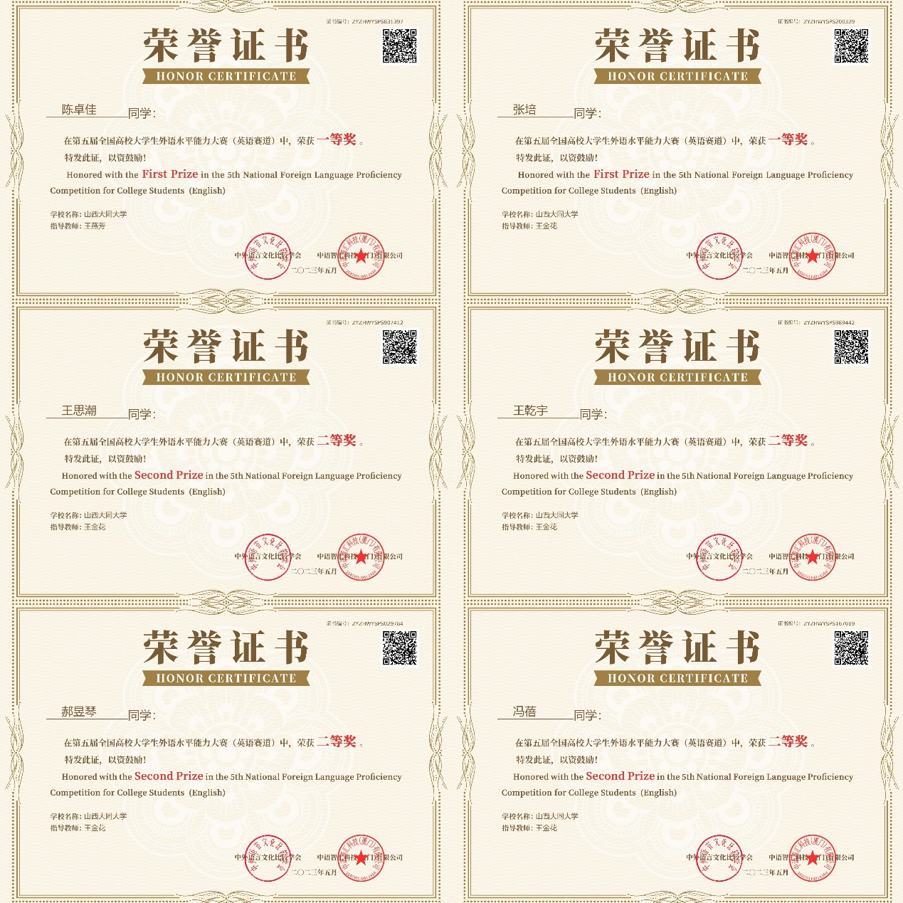 5月13日,由中外语言文化比较学会主办的第五届全国高校大学生外语水平能力大赛(英语赛道)落下帷幕。今年会外院学子在商务英语团队教师的精心指导下,12名同学参加全国决赛,8名同学获奖,其中由王金花和王燕芳指导的陈卓佳和张培获一等奖,王思潮和王乾宇等4名同学获二等奖,李拴英等2名同学获得三等奖。