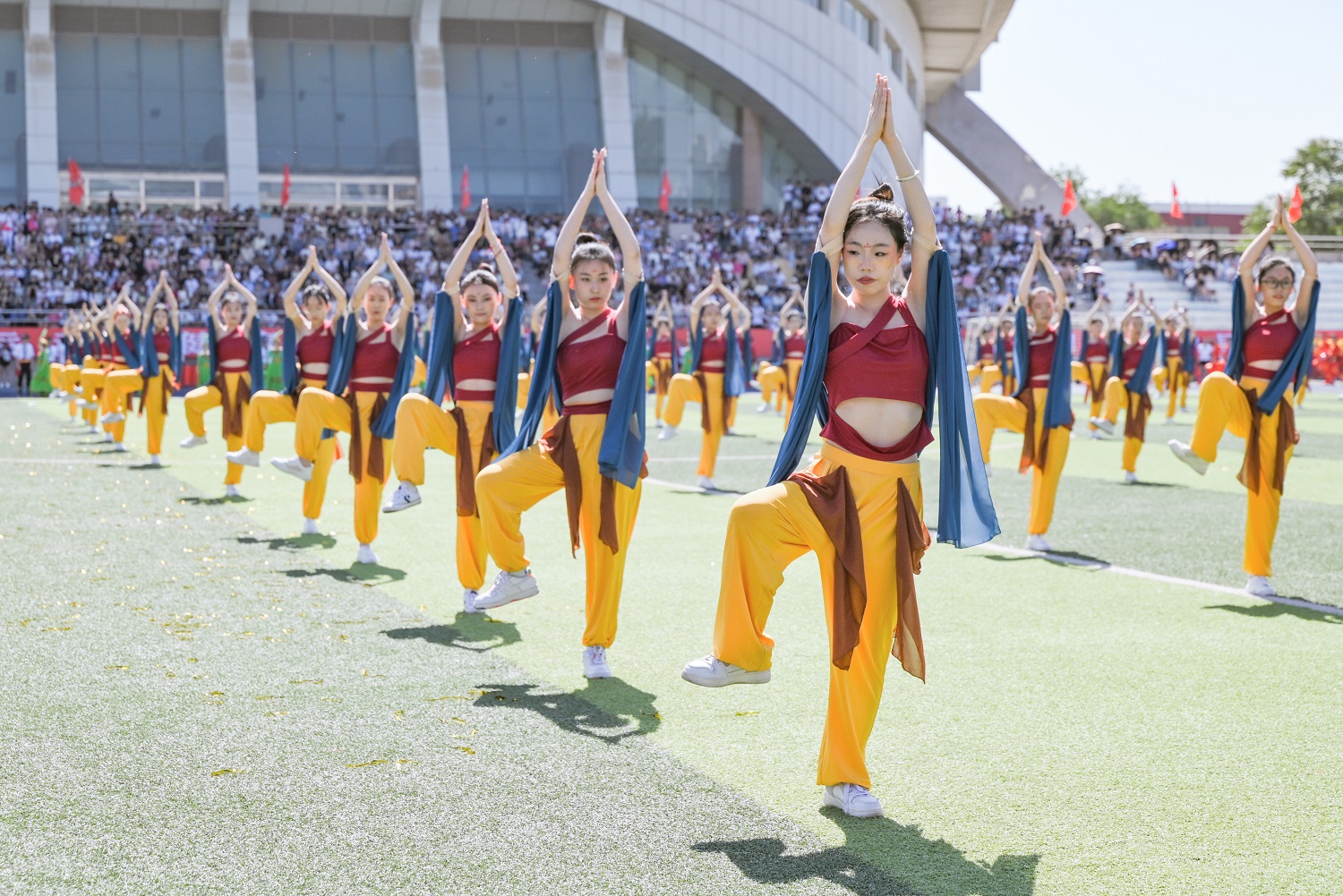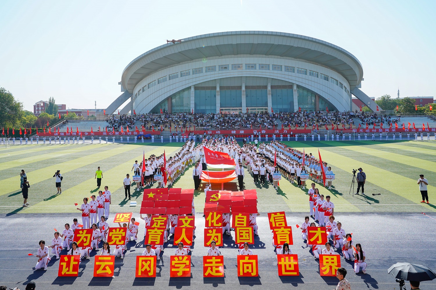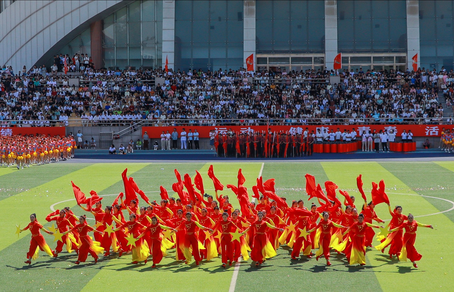 夏日灼灼,微风习习。国旗队、会旗队、军乐队、花束队、旗队、裁判员队、教职工代表队、各学院代表队依次经过主席台。舞出青春风貌,舞出坚定决心,化学与化工学院代表队以一段非物质文化遗产——扇子舞表达了对中国梦的向往与追求。承同大之魂,展物电之风,“学思想,强党性,重实践,建新功”——物电学子铿锵表达了当代青年听党话、感党恩、跟党走的铮铮心声。传承岐黄薪火,弘扬国医精粹,中医药健康服务学院方队的太极拳阴阳调和、道生万物,充分彰显中医文化之美。机电工程学院79名汉族同学与17名新疆籍民族同学在《少年》的欢快节拍中共舞,赞美青春风采,歌唱民族团结。煤炭工程学院代表队用手花摆出同大的字样,逐渐升起的数字代表学院悠久的办学历史。建筑与测绘工程学院代表队带着两只萌萌的狮子上场,行进队形变换出“土木”“同大”字样……美轮美奂的队列造型,主题鲜明的大幅标语,富于特色的专业展示,行进至主席台前的22个学院方队,各美其美、美美与共,以其独特的方式,深情表达了3万多师生员工对党的无限忠诚、对同大家园的深沉热爱,对建设高水平应用型大学的信心与决心。