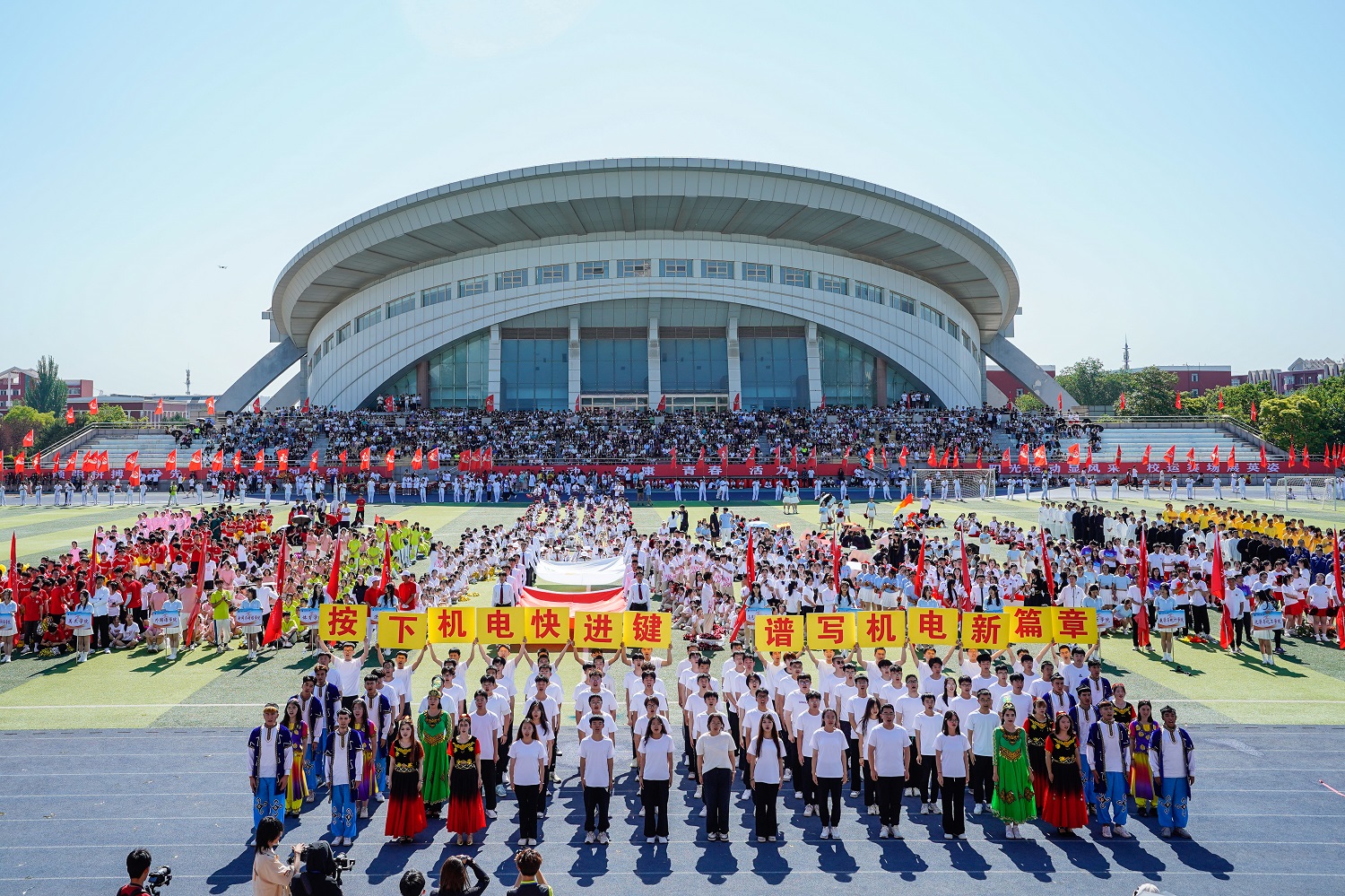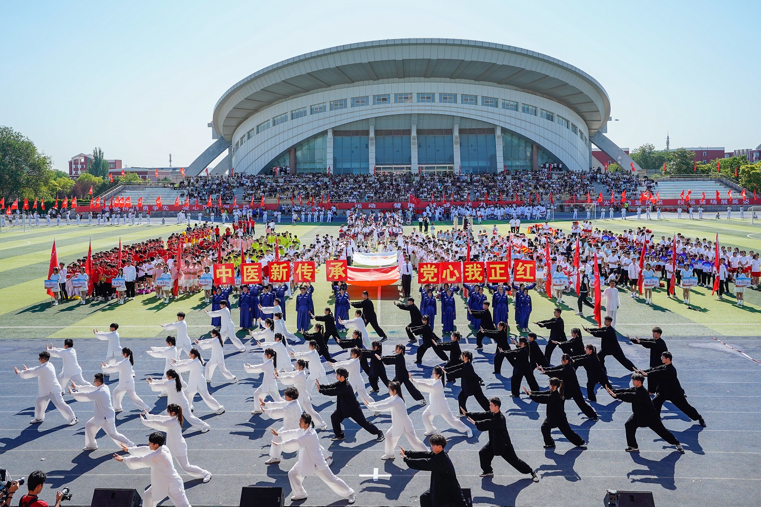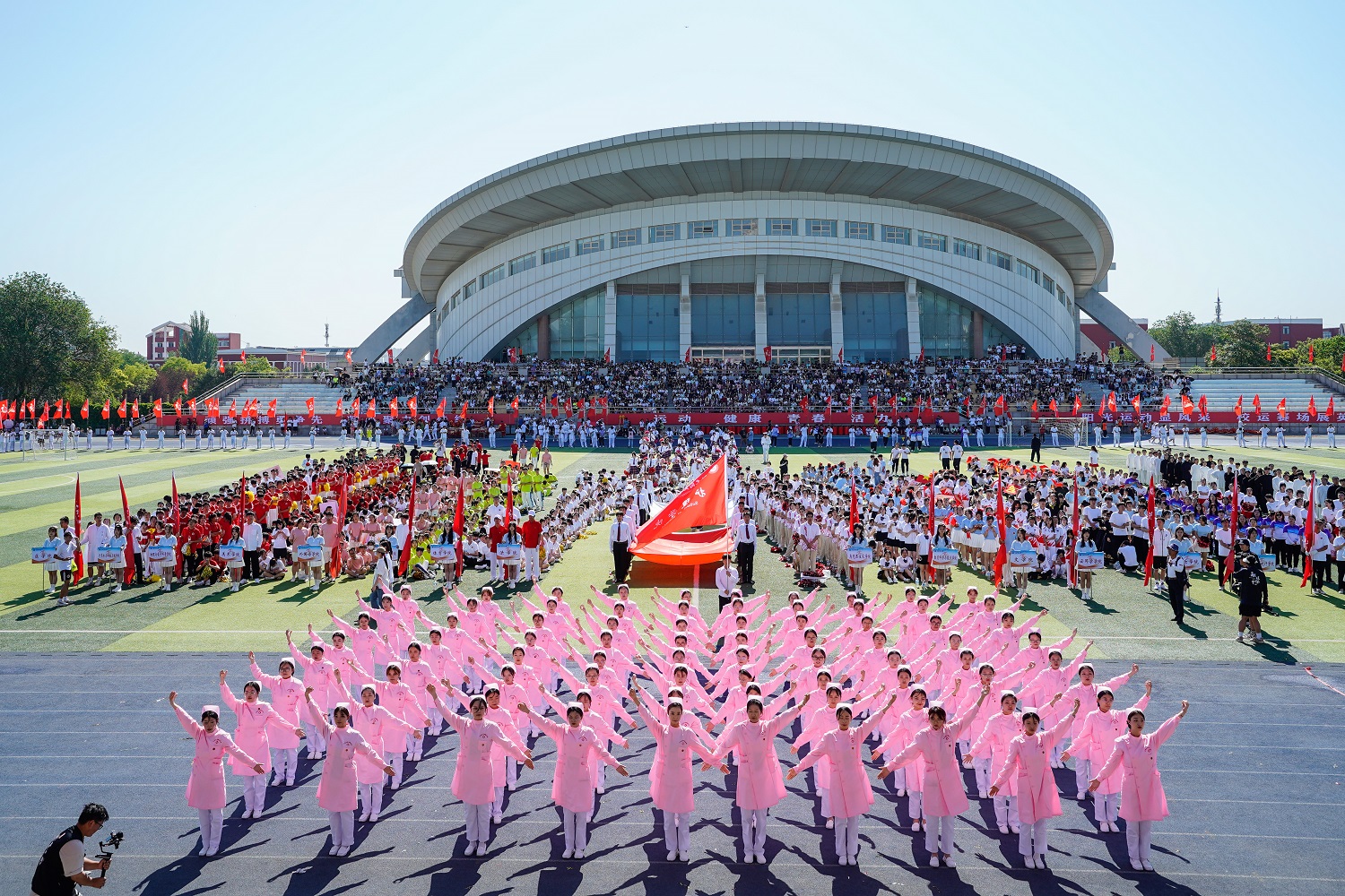 夏日灼灼,微风习习。国旗队、会旗队、军乐队、花束队、旗队、裁判员队、教职工代表队、各学院代表队依次经过主席台。舞出青春风貌,舞出坚定决心,化学与化工学院代表队以一段非物质文化遗产——扇子舞表达了对中国梦的向往与追求。承同大之魂,展物电之风,“学思想,强党性,重实践,建新功”——物电学子铿锵表达了当代青年听党话、感党恩、跟党走的铮铮心声。传承岐黄薪火,弘扬国医精粹,中医药健康服务学院方队的太极拳阴阳调和、道生万物,充分彰显中医文化之美。机电工程学院79名汉族同学与17名新疆籍民族同学在《少年》的欢快节拍中共舞,赞美青春风采,歌唱民族团结。煤炭工程学院代表队用手花摆出同大的字样,逐渐升起的数字代表学院悠久的办学历史。建筑与测绘工程学院代表队带着两只萌萌的狮子上场,行进队形变换出“土木”“同大”字样……美轮美奂的队列造型,主题鲜明的大幅标语,富于特色的专业展示,行进至主席台前的22个学院方队,各美其美、美美与共,以其独特的方式,深情表达了3万多师生员工对党的无限忠诚、对同大家园的深沉热爱,对建设高水平应用型大学的信心与决心。