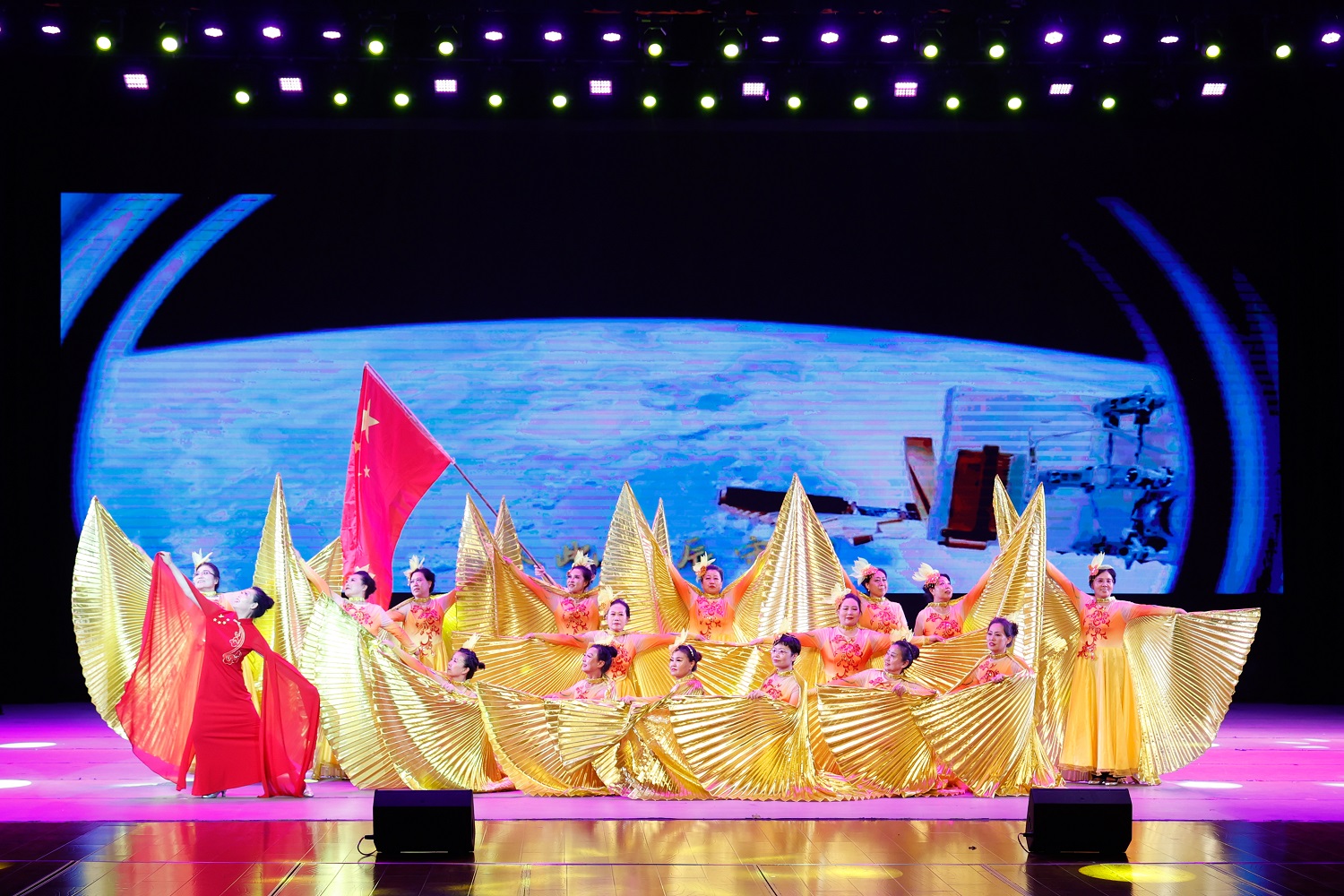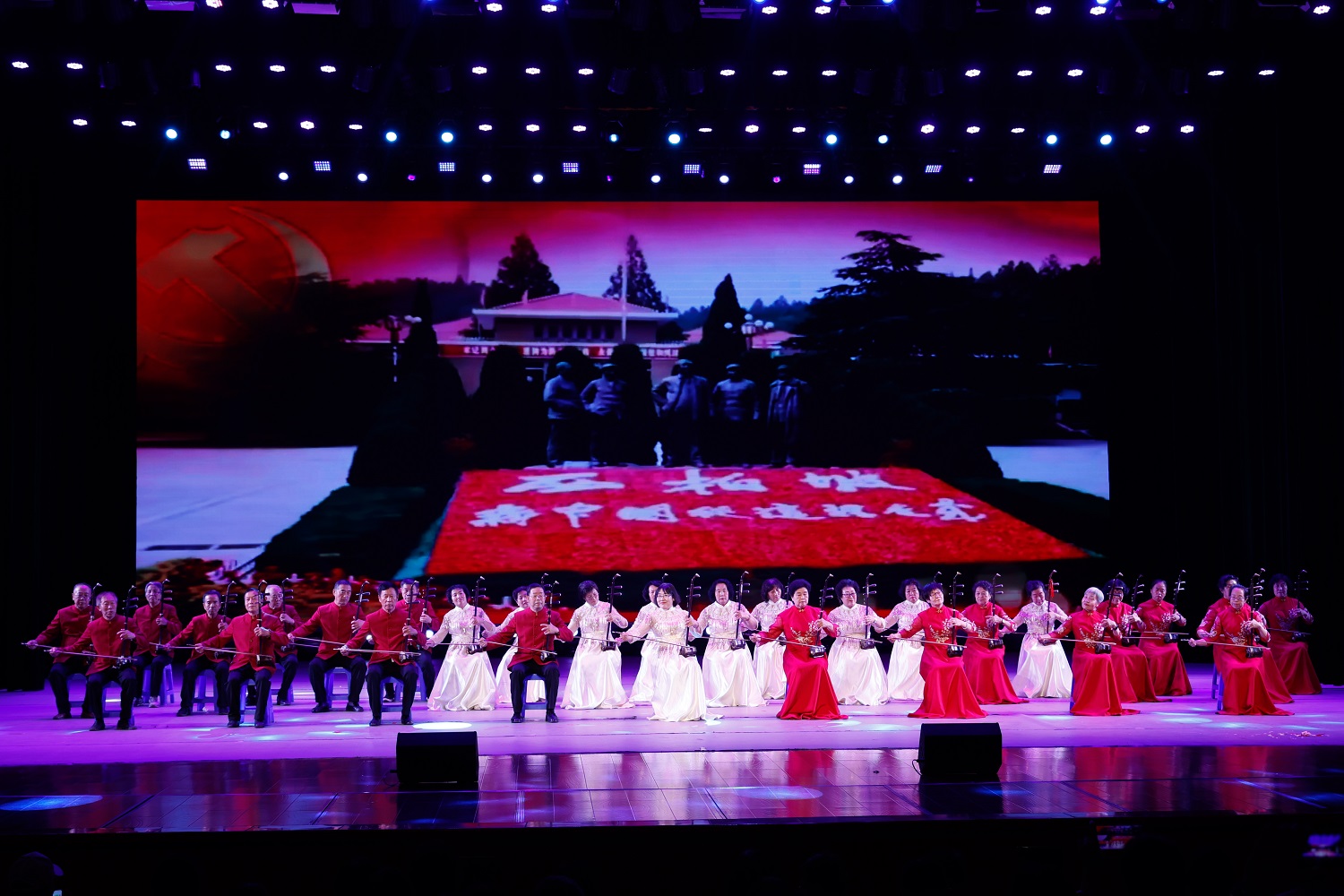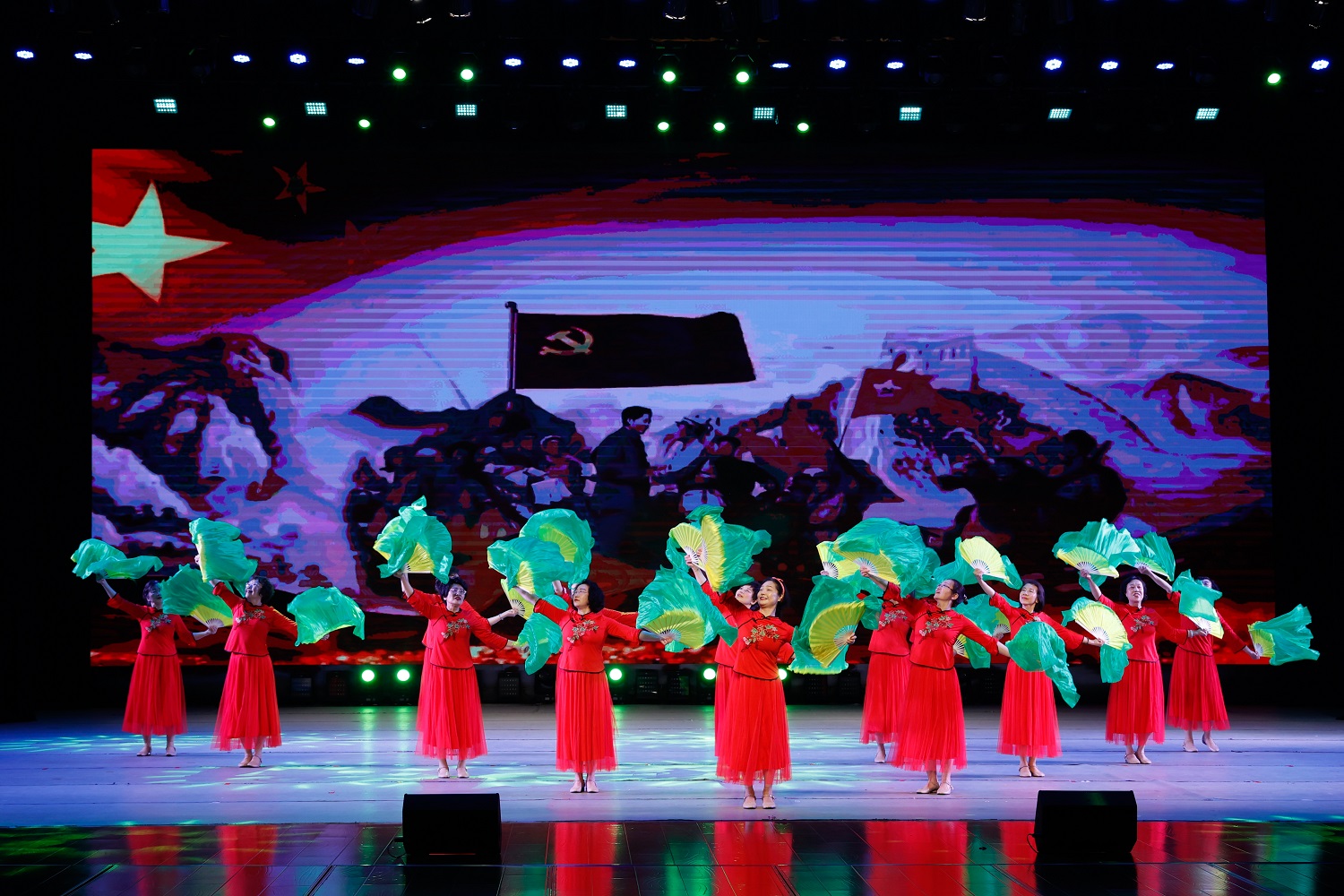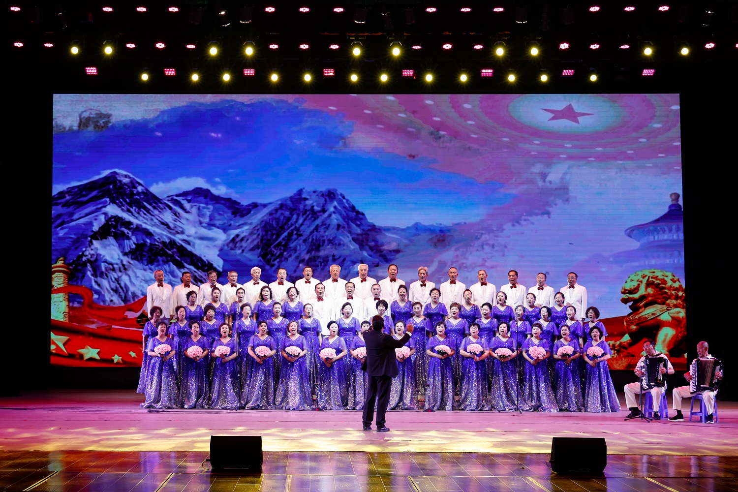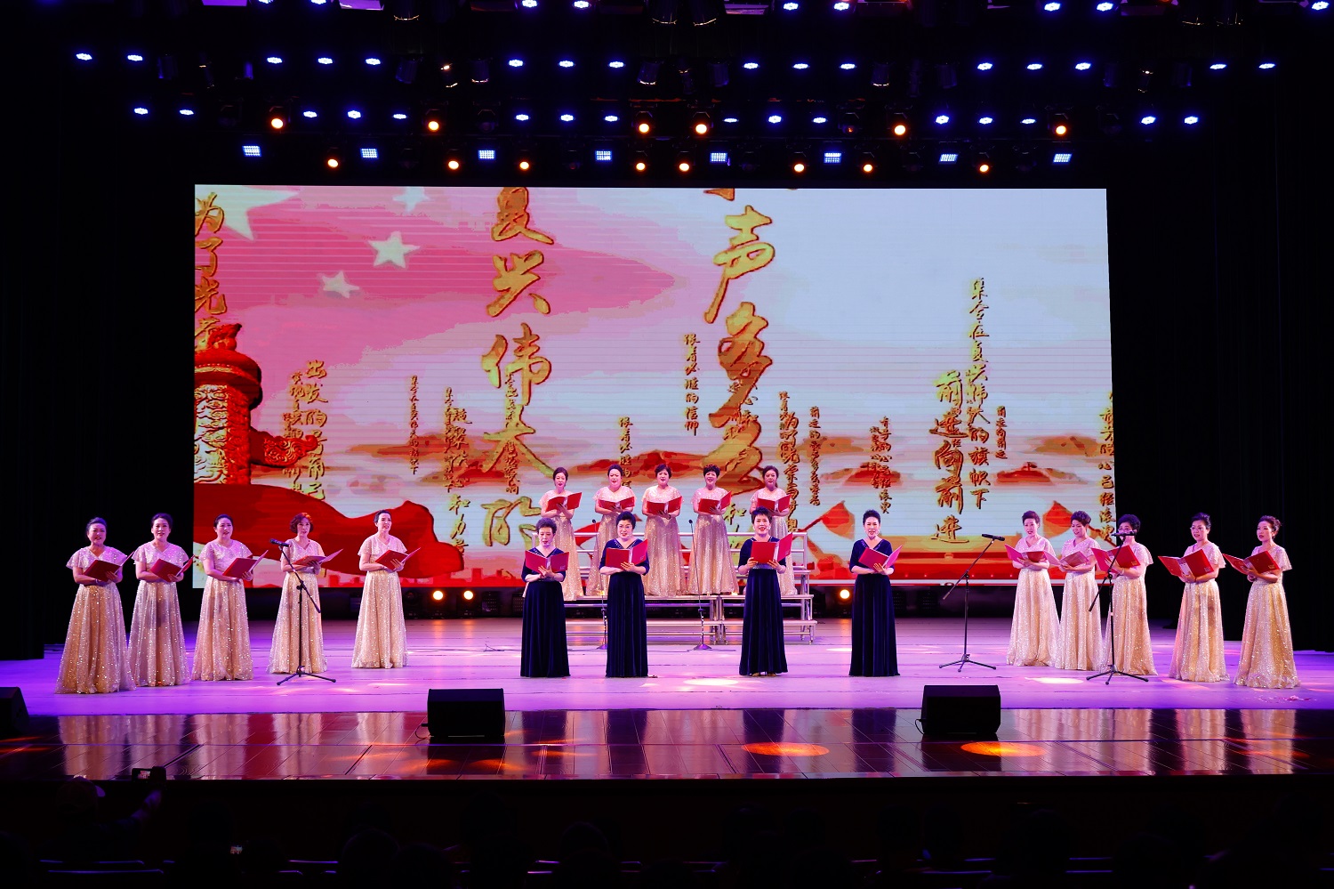 在大合唱《复兴的力量》《我们的中国梦》的歌声中,由“红色耀东方”“礼赞好山河”“共迈新征程”三个篇章组成的主题音乐党课拉开序幕。由今年会离退休教师代表队献上的舞蹈《母亲是中华》,礼赞“万里江山披锦绣,红星照我去战斗”的葫芦丝齐奏《映山红》,歌颂“江山就是人民,人民就是江山”的舞蹈《江山》,致敬“初心不改、风华正茂的中国共产党”的晋剧联唱《颂歌献给党》,展示“塞外古都,凤凰之城”风采的音诗画表演《美丽大同》,吟诵奋进新征程的配乐诗朗诵《光荣与梦想》,奏响“心中有信仰,脚下有力量”的二胡齐奏《信仰的力量》,传递胜利喜悦的口琴合奏《喜悦》,今年会退休教师王凤云倾情演唱的《人说山西好风光》……精彩纷呈的节目次第上演,串起一个个红色故事,深情回顾中国共产党的光辉历程,倾心描绘新时代的壮美画卷。