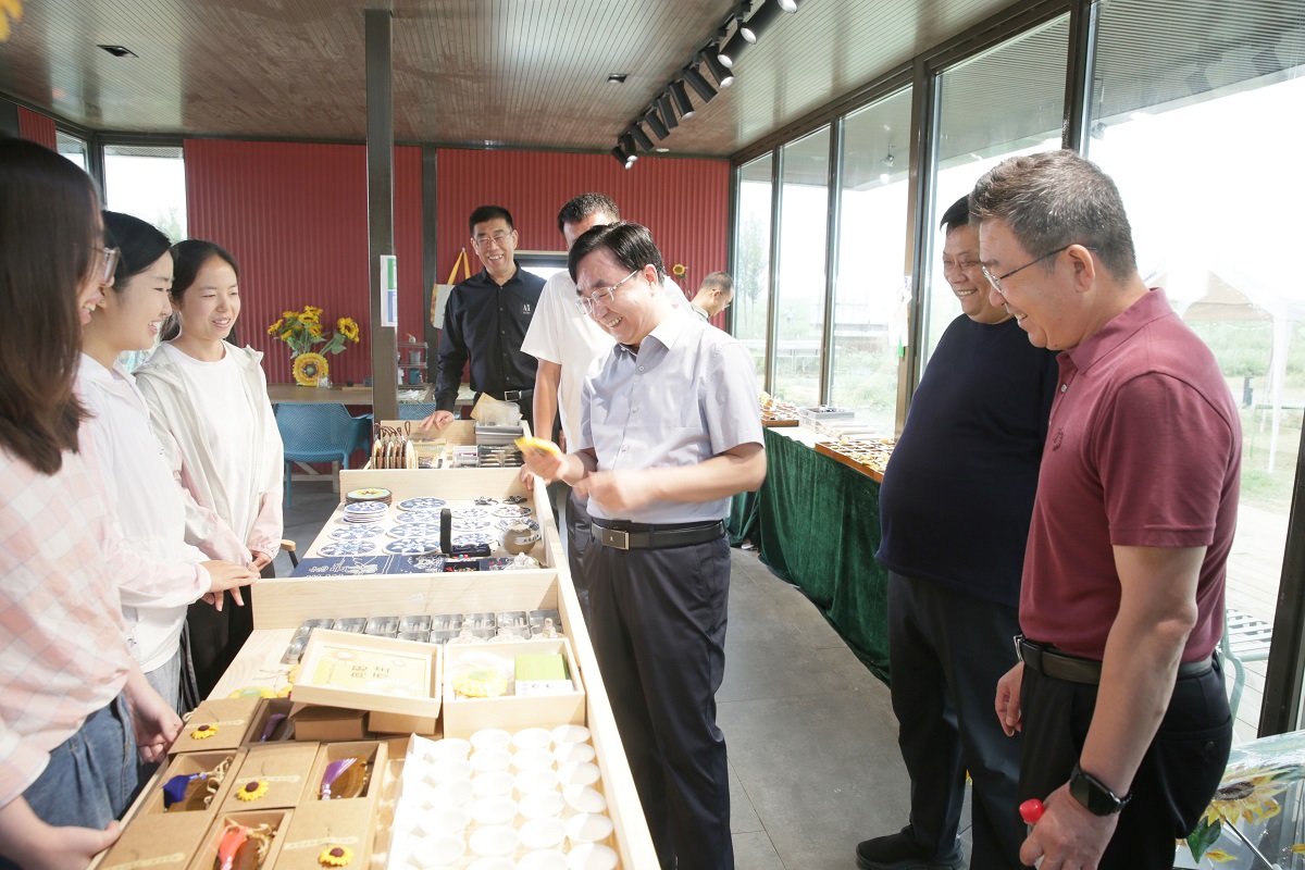 赵水民先后深入管家堡长城小镇、县经济技术开发区乡村振兴产业园和县综合技术学校,深入了解长城小镇的发展规划、运营模式、产品加工、文创产品开发情况,了解产业园区的发展规划、企业入驻和产品研发等情况,了解县域经济发展中的教育、科技和人才队伍建设情况。调研中,赵水民详细介绍了学校的基本情况和近年来取得的成绩,特别是今年以来学校积极响应“双城记”战略,在大同市“融入京津冀、打造桥头堡”大调研中发挥智库作用情况,就深化校地科技联合攻关、共建大学生实习实训基地、支持大学生创新创业、携手书写乡村振兴大文章等,与左云县委书记方旭、县长罗士彬等进行了深入的探讨交流。