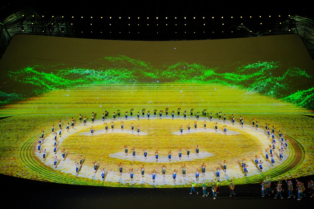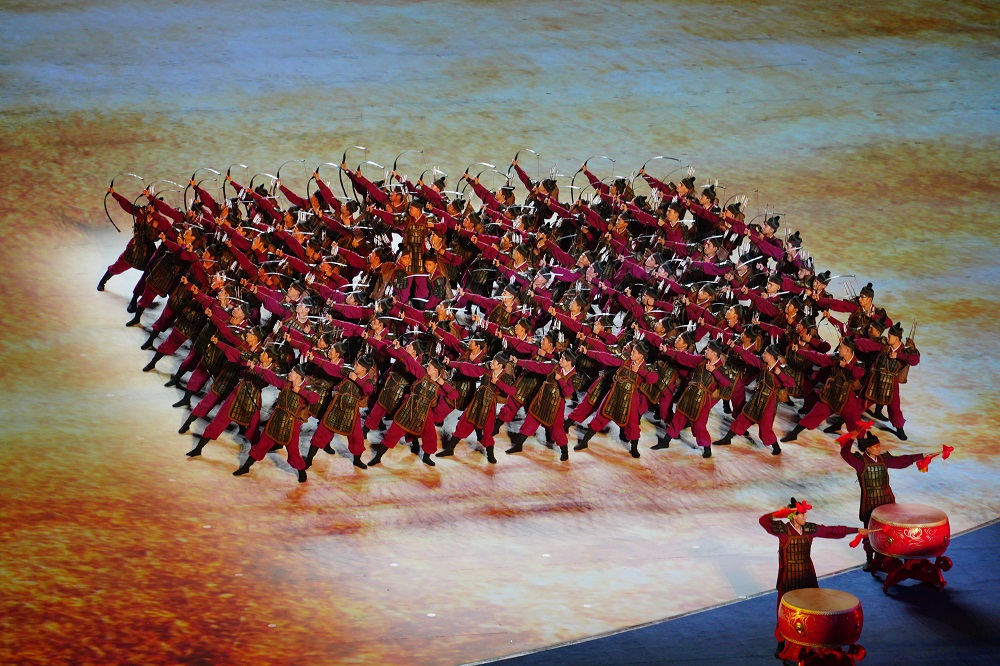 这场开幕式表演以“溯源:文明之光”“筑魂:寻根三晋”“逐梦:一路生花”“展翼:‘翔’动未来”“奋进:同铸辉煌”等篇章组成,在多媒体技术和声光电手段的加持下,融入地方文化、时尚元素和多种艺术表现形式,生动展示了我省厚重的历史文化底蕴和经济社会发展辉煌成就,以及三晋儿女牢记嘱托、奋发图强,一张蓝图绘到底的时代风采和精神面貌。
