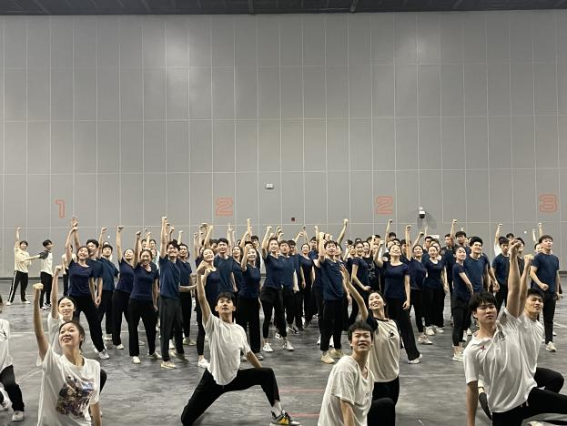 6月20日,音乐学院辅导员栗丽鑫、音乐学院教师陈东鸽与40名同学一起,从北京出发抵达成都。对同学们而言,参演大型情景歌舞剧是一次不小的挑战。不同于普通的舞台表演,歌舞剧有表演、有动作、有走位,难度也更大。师生们迎难而上,一到成都便立即开始了紧张的彩排。除了全身心投入集体彩排之外,他们还主动联系了当地的排练室另行加课,一遍又一遍对每个环节和动作进行细致打磨。成都排练历时50天,两位老师与同学们建立了深厚的感情,也亲眼见证了大家的成长。