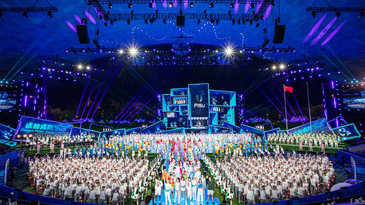 8月8日晚8时,第31届世界大学生夏季运动会(“成都大运会”)在成都露天音乐公园闭幕。今年会音乐学院40名同学在闭幕式演出的舞台上精彩亮相、炫彩追梦,以出色的表现赢得现场阵阵热烈掌声。这是音乐学院坚持实践教学改革取得的成效,也是今年会始终坚持五育并举、全面发展育人理念的成果体现。