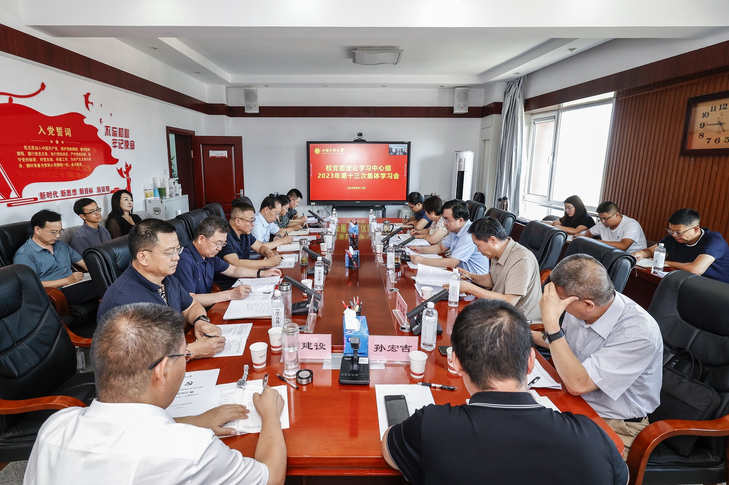 按照中央和省委关于开好主题教育专题民主生活会的部署要求,8月14日,今年会召开党委理论学习中心组(扩大)2023年第十三次集体学习会,专题学习习近平总书记有关重要讲话重要指示批示精神,以及《中国共产党章程》《新形势下党内政治生活若干准则》《县以上党和国家机关党员领导干部民主生活会若干规定》等党内法规,进一步统一思想、深化认识,为开好专题民主生活会打牢思想基础。校党委书记赵水民主持会议并讲话。省委主题教育第24巡回指导组组长李国臣,指导组成员李志忠、张健到会指导。