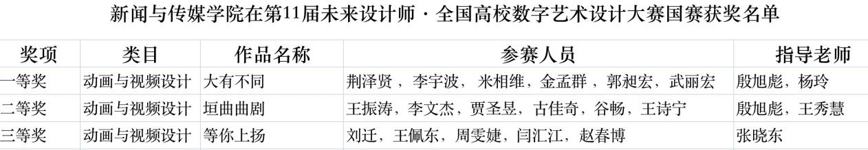 近日,第十一届未来设计师全国高校数字艺术设计大赛(NCDA)全国总决赛获奖名单公布。今年会新闻与传媒学院选送的参赛作品荣获全国一等奖1项,二等奖1项,三等奖1项。