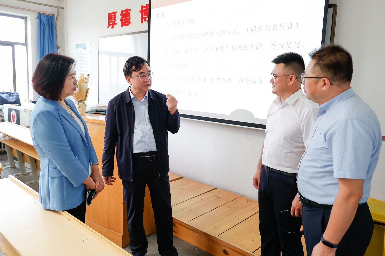 上午8点,赵水民来到博雅楼,分别与2021级设施农业科学与工程一班、2021级运动康复一班的同学们共同聆听了韩志平老师主讲的《农业设施设计与建造》课程、王海老师主讲的《运动康复治疗技术》课程。课后,赵水民与任课教师进行交流,对课堂效果给予肯定,并询问了解他们的教学、科研工作情况。他指出,教学的主阵地在课堂,提高课堂教学质量的关键在教师,要不断更新教育理念,精心设计课程计划,着力改进课堂教学方式方法,充分调动学生参与课堂教学的积极性,在教与学的互动中实现教学目的。在狠抓课堂教学的同时,要结合省情、市情、校情和学生实际加强实践教学,让学生们走进田间地头、厂矿企业、街头巷尾,在广阔的天地中进行丰富的实践学习,持续擦亮学校人才培养的应用型底色。