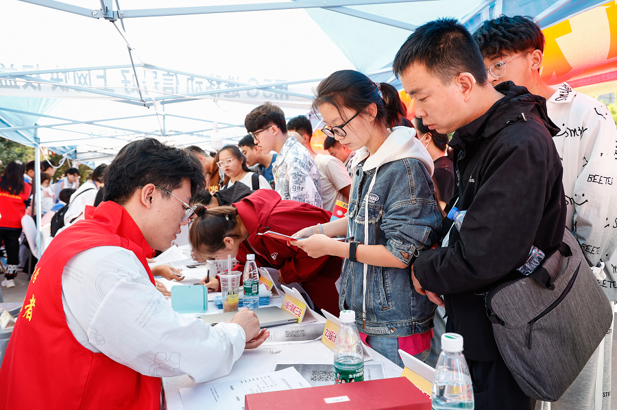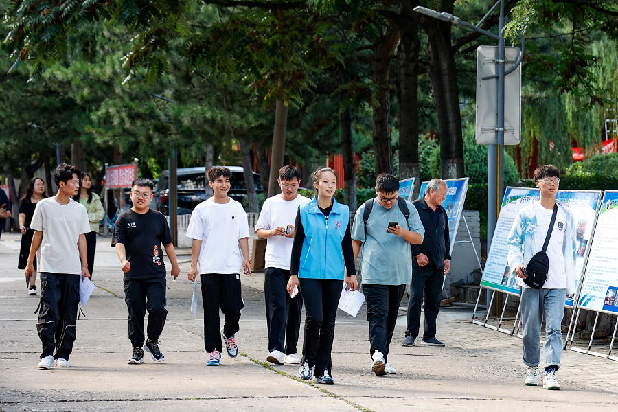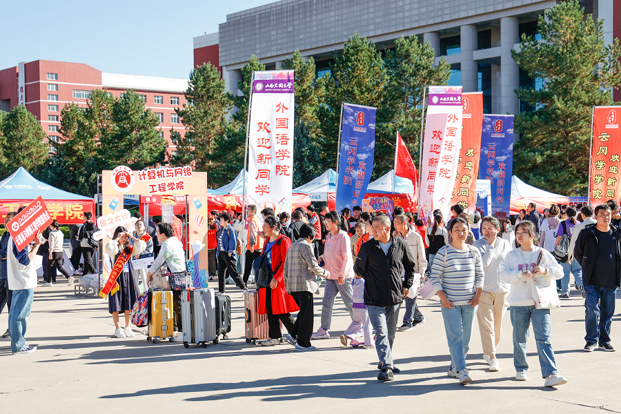 云天收夏色,木叶动秋声。九月的同大校园如一幅浓墨重彩的浅秋画,满“新”欢喜、以“心”迎新便是画中最美的点缀:火车站、南站、汽车站均安排有接待点和接站车辆,为新生直达学校提供便捷服务;校门内“热烈欢迎2023级新同学”的巨幅展板格外醒目,吸引着众多家长、新生驻足打卡;兼具场地示意和报到流程导航功能的迎新导览指南“大而全”,让新生和家长一目了然;各学院独具一格的“迎新展陈”,处处体现着学院特色和人文关怀;宣传学生资助政策的“绿色通道办理处”,为困难学生免费提供入学“爱心礼包”;“新生参军入伍政策咨询站”赫然在列,从入校之日起便对新生开展国防教育,引导他们树立远大理想、矢志报效祖国;“心理健康宣传点”人头攒动,新生们纷纷来此感受“心灵港湾”的神韵和魅力;迎新现场的医疗服务点和家长休息区,全力为新生和家长提供健康和休息保障;还有各迎新点志愿服务、信息采集、学院接待、办理入住“一站式”服务……无不让新生和家长感受到家的温暖。