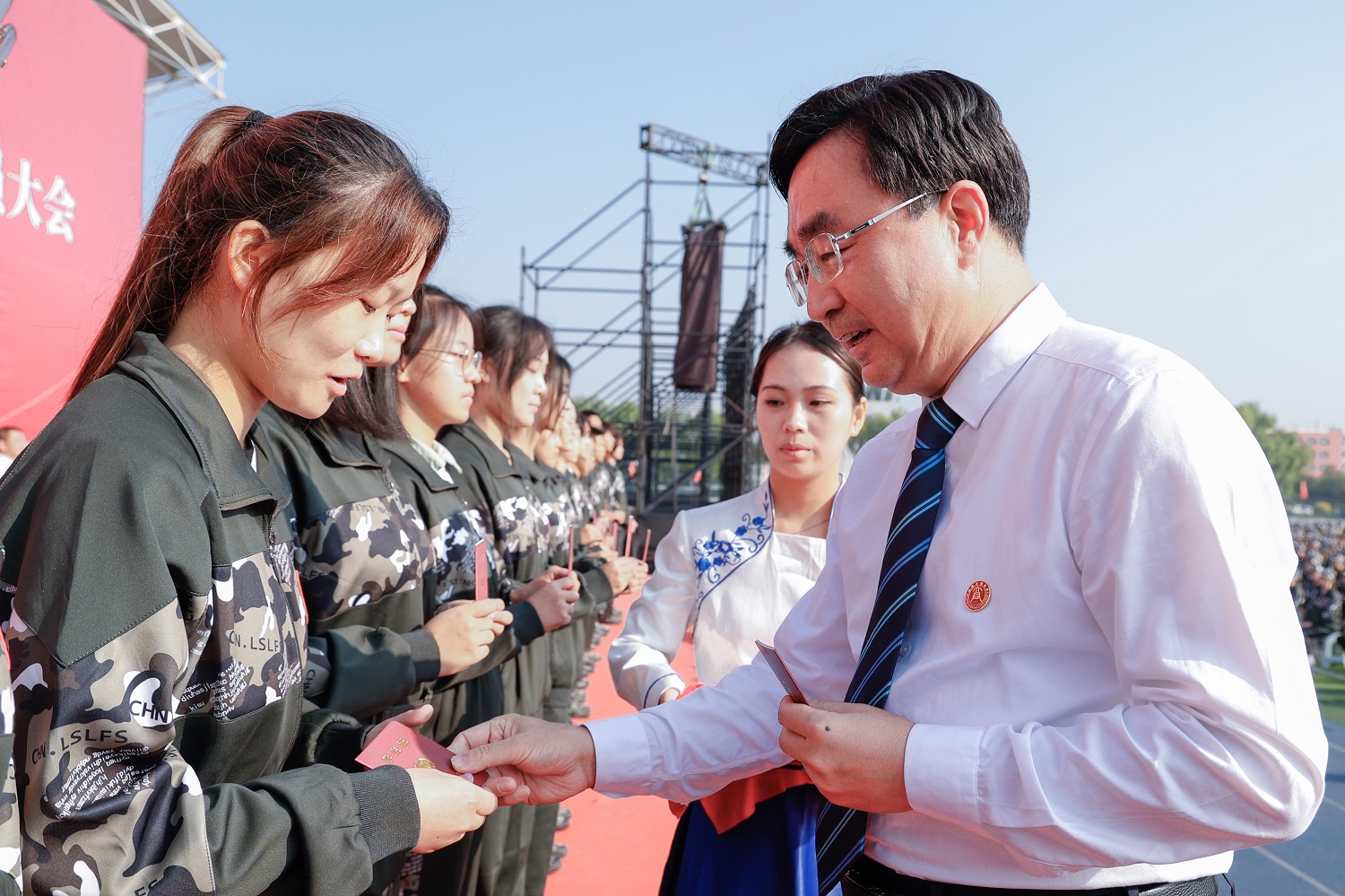 校党委常委、副校长马轶明作军训动员,对2023级新生军训提出要求:一要做到思想上高度重视,一切行动听指挥。二要做到尊重教官,虚心向教官学习。三要做到严格要求自己,刻苦训练。四要做到安全第一,加强防范和保护意识。五要做到着装规范、内务整洁,培养良好作风。