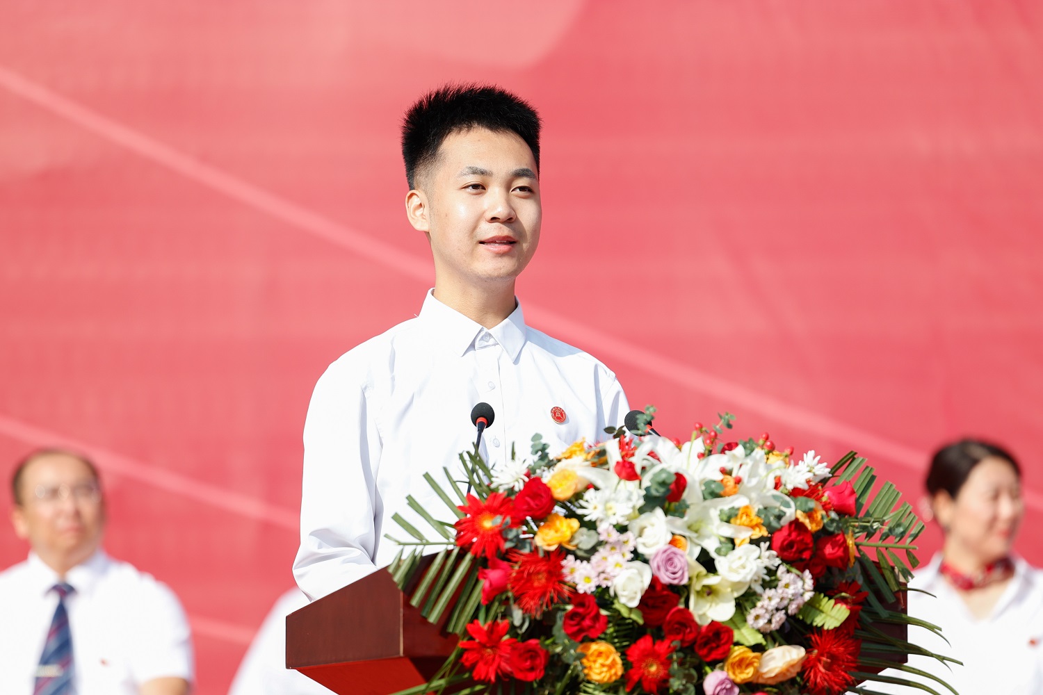 在校生代表、文学院李超伟同学鼓励学弟学妹们要勇敢地跨过“学业理念转变之门”“评价标准之门”“强基育人之门”,完成高中到大学的华丽转身,书写属于同大青年的奋斗篇章。