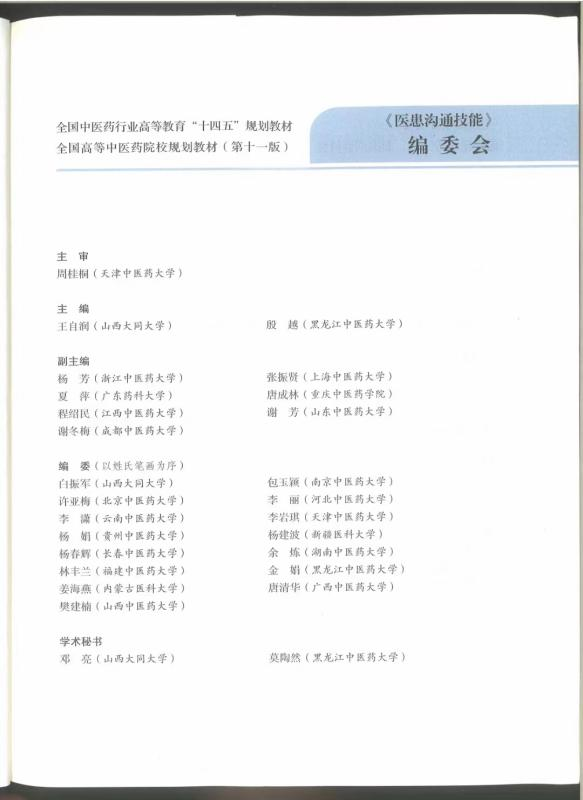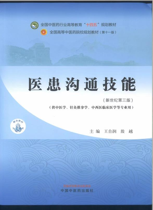 《医患沟通技能》是全国中医药行业高等教育“十四五”规划教材,也是全国高等中医药院校规划教材。这是由今年会教师作为主编和参编的中医药行业最权威的教材,也是学院教学成果的体现。(中医药健康服务学院)