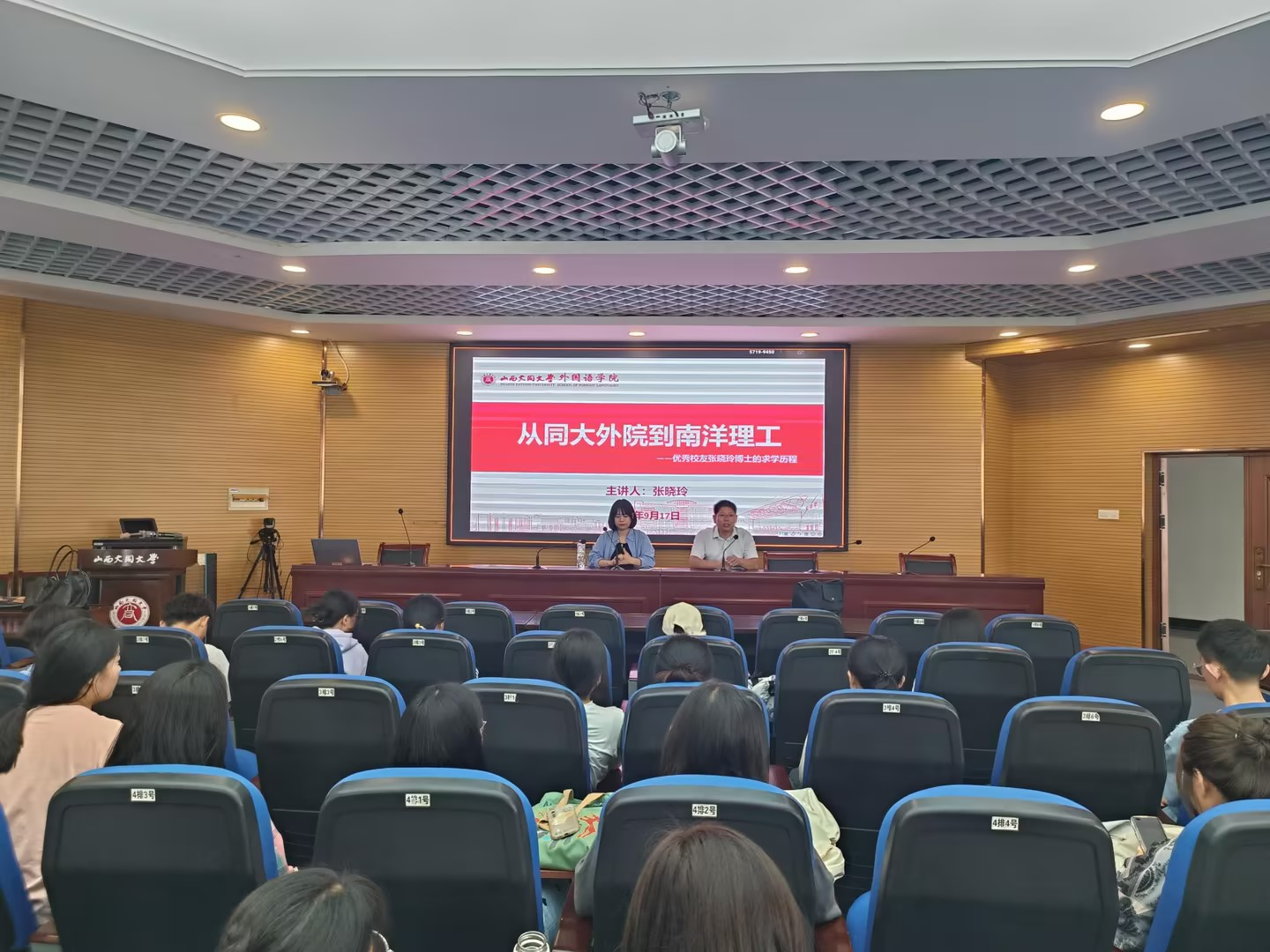 为帮助2024届学生答疑解惑,引导学生正确面对职业选择,9月17日下午,jinnianhui今年会“校友导航 奋进之路”优秀校友报告会在行知楼0228报告厅举办。今年会外国语学院2012级毕业校友、上海外国语大学在读博士生、南洋理工大学留基委联合培养博士生张晓玲担任主讲嘉宾。此次报告会由外国语学院党委书记张俊杰主持。