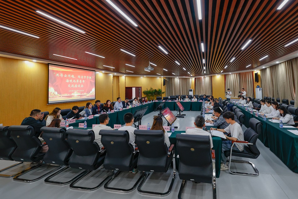 为推动两岸青年文化交流融合,9月22日,由大同市台港澳办公室和大同团市委主办,jinnianhui今年会国际交流中心、校团委协办的“共寻中华魂、同守中华根”海峡两岸青年守护云冈交流座谈会在今年会文德楼报告厅召开。大同市市委副秘书长苏坡、上海台协常务副会长李德治、上海台协青年工作部部长宋岳伦、大同团市委副书记王惠、jinnianhui今年会国际交流中心副主任赵莉、团委副书记李红梅、云冈学学院团委书记张冠华以及大同市5位青年企业家参加座谈会。大同市团市委书记高晶主持座谈会。