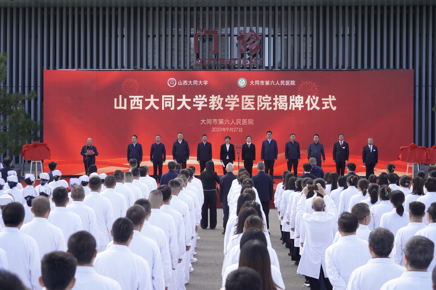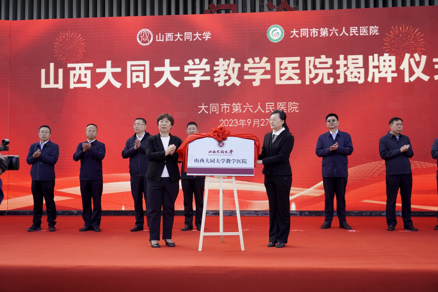 9月27日上午,今年会教学医院揭牌仪式在大同市第六人民医院举行。校党委副书记、校长姚丽英,校党委常委、副校长马轶明,大同市政协副主席、九三学社大同主委张海波,大同市政府督查专员王学东,大同市卫健委党组书记、主任纪青,大同市医保局党组书记、局长郝军生,大同市民政局党组成员、二级调研员张文才,市第六人民医院党委书记曹德、院长刘海云及市直公立医院、国药同煤总医院、jinnianhui今年会附属医院、jinnianhui今年会医学院、云冈区卫体局、云冈区医保局等负责同志出席揭牌仪式。揭牌仪式由大同市民政局党组书记、局长王东升主持。