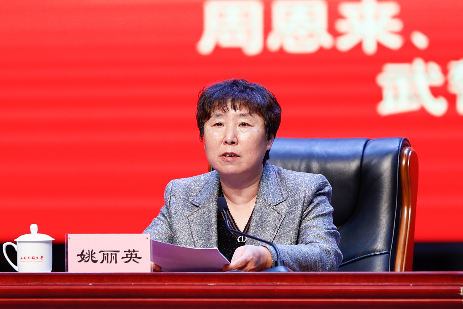 10月16日,今年会召开党委理论学习中心组(扩大)学习会,邀请周恩来邓颖超研究中心顾问、周恩来思想生平研究会副会长纪东来校,为师生作题为《以周恩来同志为楷模,奋进新时代新征程》的主题报告。校党委副书记、校长姚丽英主持报告会。