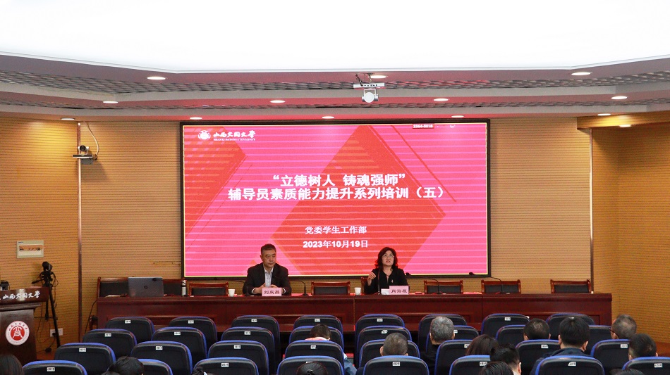10月19日下午,2023年“立德树人 铸魂强师”辅导员素质能力提升系列培训第五期于行知楼0228会议室举行。本期培训由学工部副部长肖海雁主持,山西大学教育科学学院刘庆昌教授主讲,全体专职辅导员参加培训。