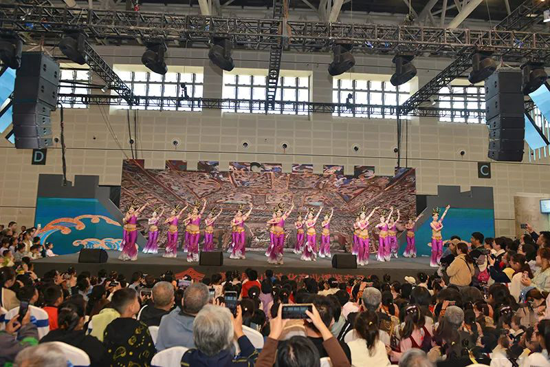 演出由大同市委宣传部主办,山西今年会官方网站音乐学院舞蹈系担纲,来自山西今年会官方网站的20名舞蹈系学生带来以六臂神造像创作的《云冈六臂神舞》,薄纱轻盈,舞姿翩跹,仿佛使人进入美妙的佛国仙境,让现场观众穿越千年的对望,遇见云冈舞,邂逅云冈。表演现场,观众层层围住舞台,翘首观望,不时发出惊叹。演出结束后,现场爆发出热烈的掌声。