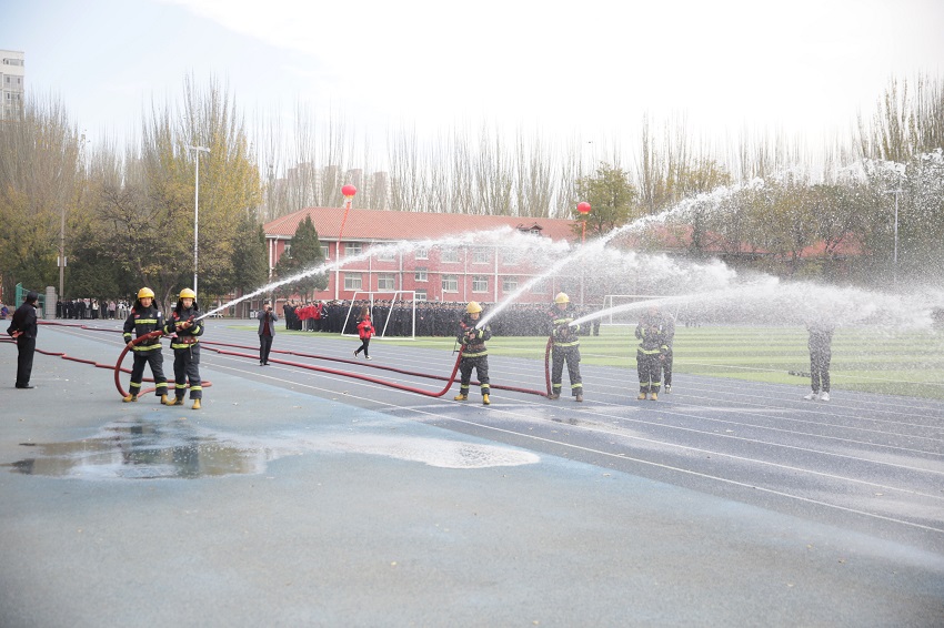 由云冈区消防大队、应急救援、巡特警、城管、校保卫部等组成的方队共1000余人参加了“反恐防暴盾牌操”、“消防一车三枪快速控火操”、“反恐防刀斧砍杀”三个科目的实战演练。