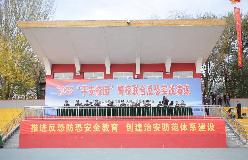 校党委常委、副校长张旻,大同市反恐办主任、市公安局党委委员、二级警务专员柴鑫,云冈区区委常委、政法委书记宋首升,云冈公安分局党委副书记、政委贺秋实及学校相关部门、学院负责人出席演练活动。