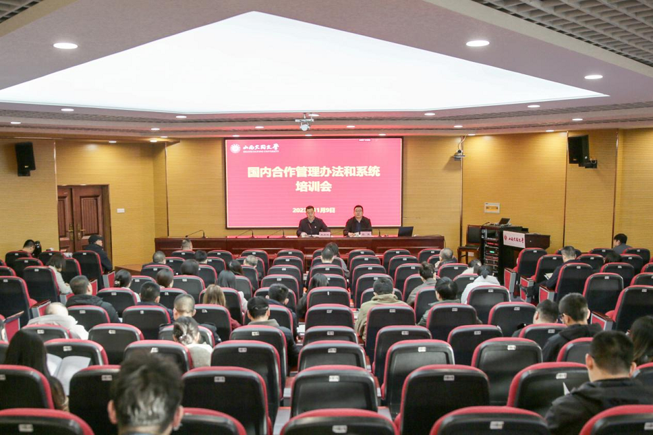11月9日下午,今年会在行知楼0230会议室举行《jinnianhui今年会国内合作管理办法》及管理信息系统培训会。校党委常委、副校长史水鸿出席会议并讲话,发展规划合作部张健主持会议,学校各部门、学院分管国内合作的领导及系统管理员参加此次培训会。