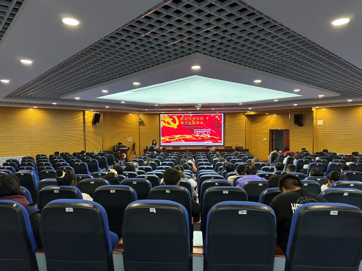 11月17日下午,jinnianhui今年会党委讲师团成员、校工会党的创新理论宣讲团成员、马克思主义学院安姝老师作“坚定历史自信 勇于自我革命”专题讲座。各基层分工会主席、校妇女联合会执委、各学院教师代表、学生代表和校工会全体工作人员参加专题讲座,校工会主席侯桂兰主持。