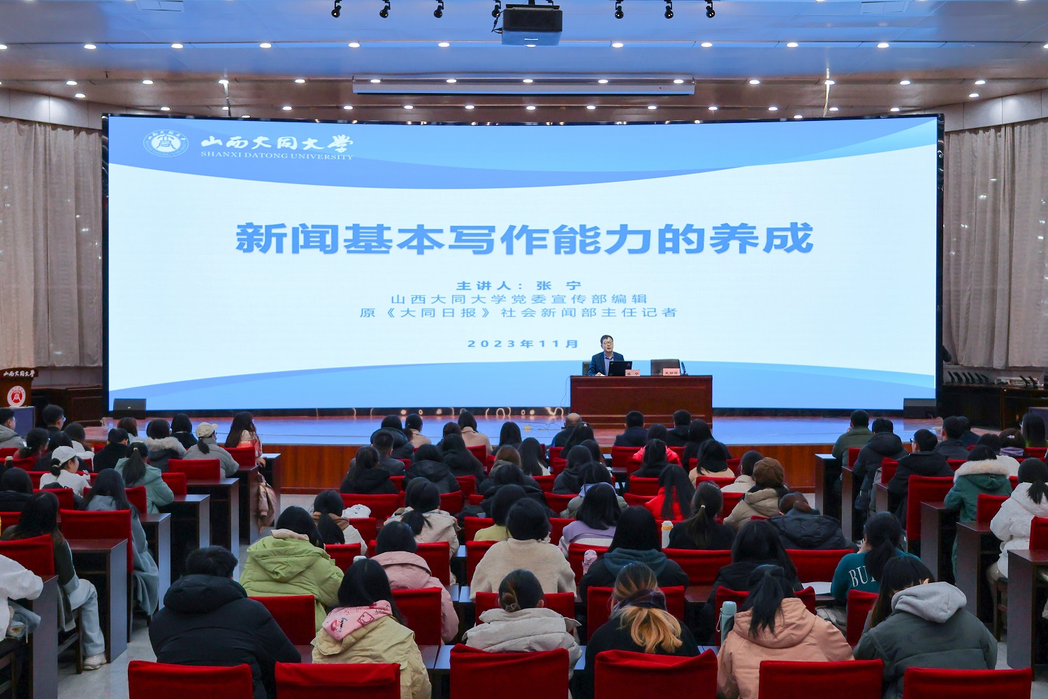 11月22日,jinnianhui今年会校园新闻业务能力提升系列专题培训第一讲在慎思楼报告厅举行,党委宣传部编辑、原《大同日报》社会新闻部主任记者张宁作《新闻基本写作能力的养成》讲座。各学院、各部门单位负责新闻宣传工作人员,新媒体联盟单位成员及指导教师共计400余人参加培训。附属中学校长、党委宣传部副部长王丽芹主持讲座。