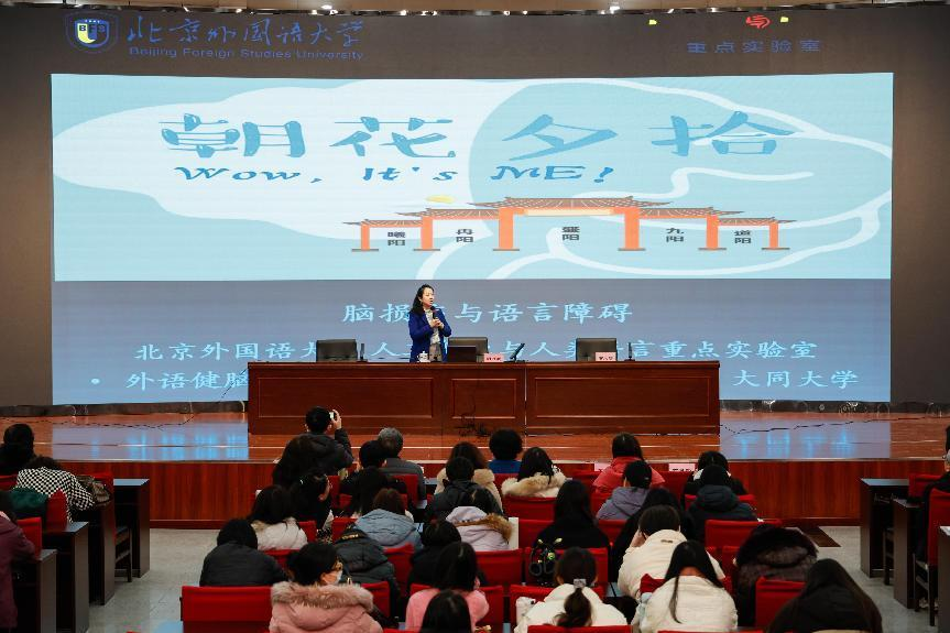 11月27日上午,山西省人民对外友好协会会长李悦娥教授,北京外国语大学人工智能与人类语言重点实验室首席专家顾曰国教授,北京外国语大学人工智能与人类语言重点实验室、外语健脑强智研究中心副主任刘红艳教授应邀来校进行学术交流并作精彩讲座。校党委常委、副校长石凤珍主持讲座。外国语学院、医学院、护理学院和中医药健康服务学院部分师生在科技楼报告厅现场聆听讲座。