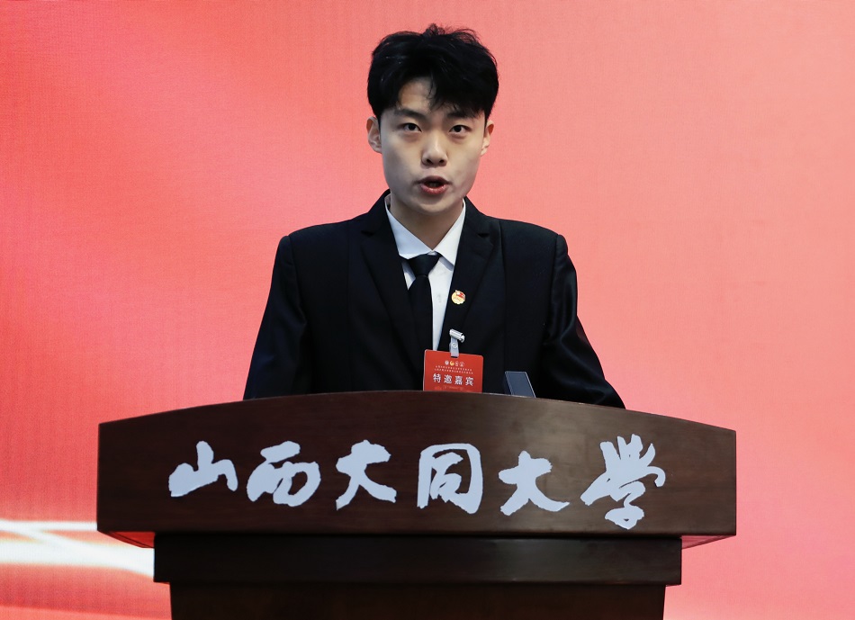 山西工学院学生会执行主席张啸天代表兄弟院校致贺词。他表示,在过去的一年中,校学生会承担了丰富的职责,并成功地开展了多元化的活动,两校将继续进行更加深入的学术和文化交流,分享经验和知识,共同取得长足进步。