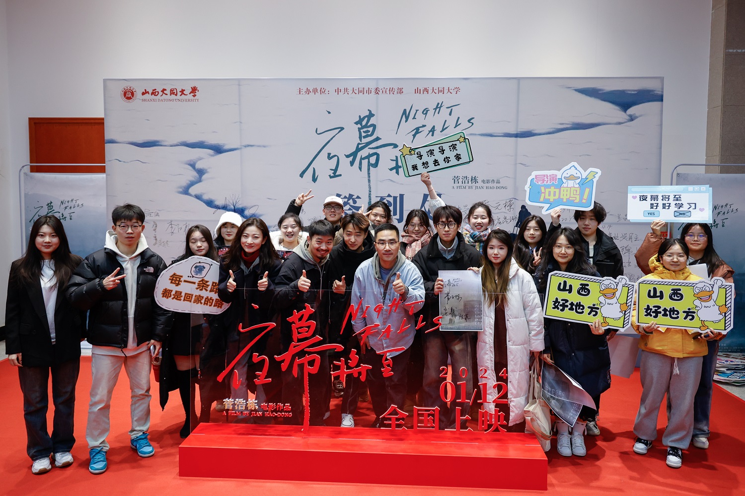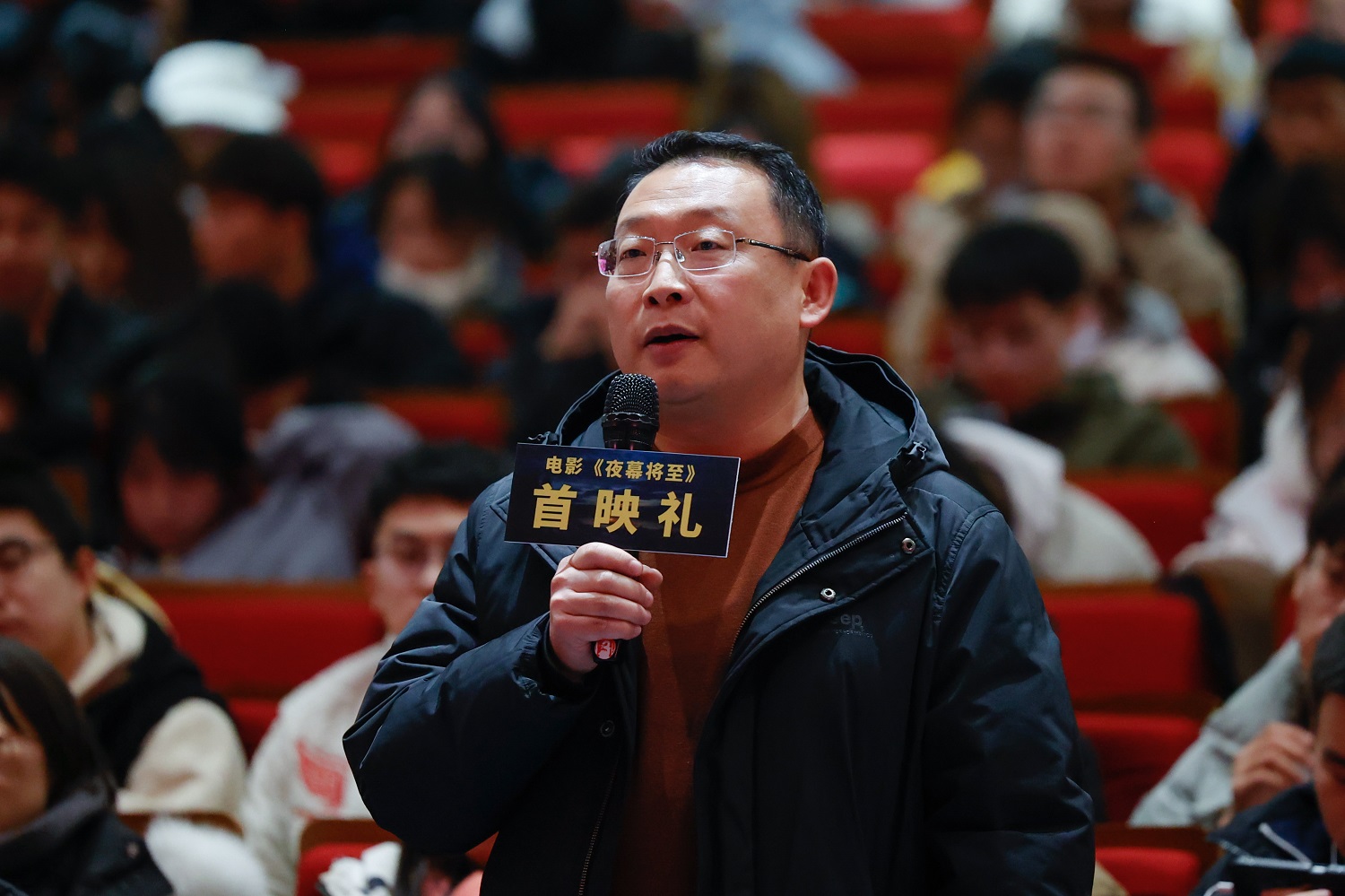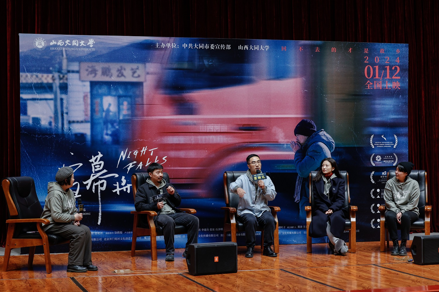 在映后交流环节,师生与影片主创团队进行了热烈的交流互动。“在拍摄遇到困难时,是什么样的信念支撑您完成了创作?”“同大的求学经历对您的成长有哪些帮助?”“您对怀揣电影梦想的青年有什么建议?”同学们踊跃发言提问,主创人员倾情互动,将现场气氛推向高潮。师生们纷纷表示,这不仅是一次文化艺术交流,更是一次逐梦之旅,菅浩栋导演的逐梦历程令人感动,催人奋进。菅浩栋表示,jinnianhui今年会是自己梦想起航的地方,《夜幕将至》能够在平遥国际电影展上大放异彩,离不开母校的培养和师长的教诲,希望学弟学妹们以“热爱和坚持”为师,勇敢逐梦。建筑与测绘工程学院院长、时任煤炭工程学院团委书记乔元栋表示,十年一晃而过,菅浩栋在学校尝试拍摄影片、创办社团的奋斗历程历历在目,看到他能心系母校、感恩母校,感到十分欣慰,希望他能始终秉持“厚德、博学、慎思、笃行”校训精神,创作出更多优秀作品。