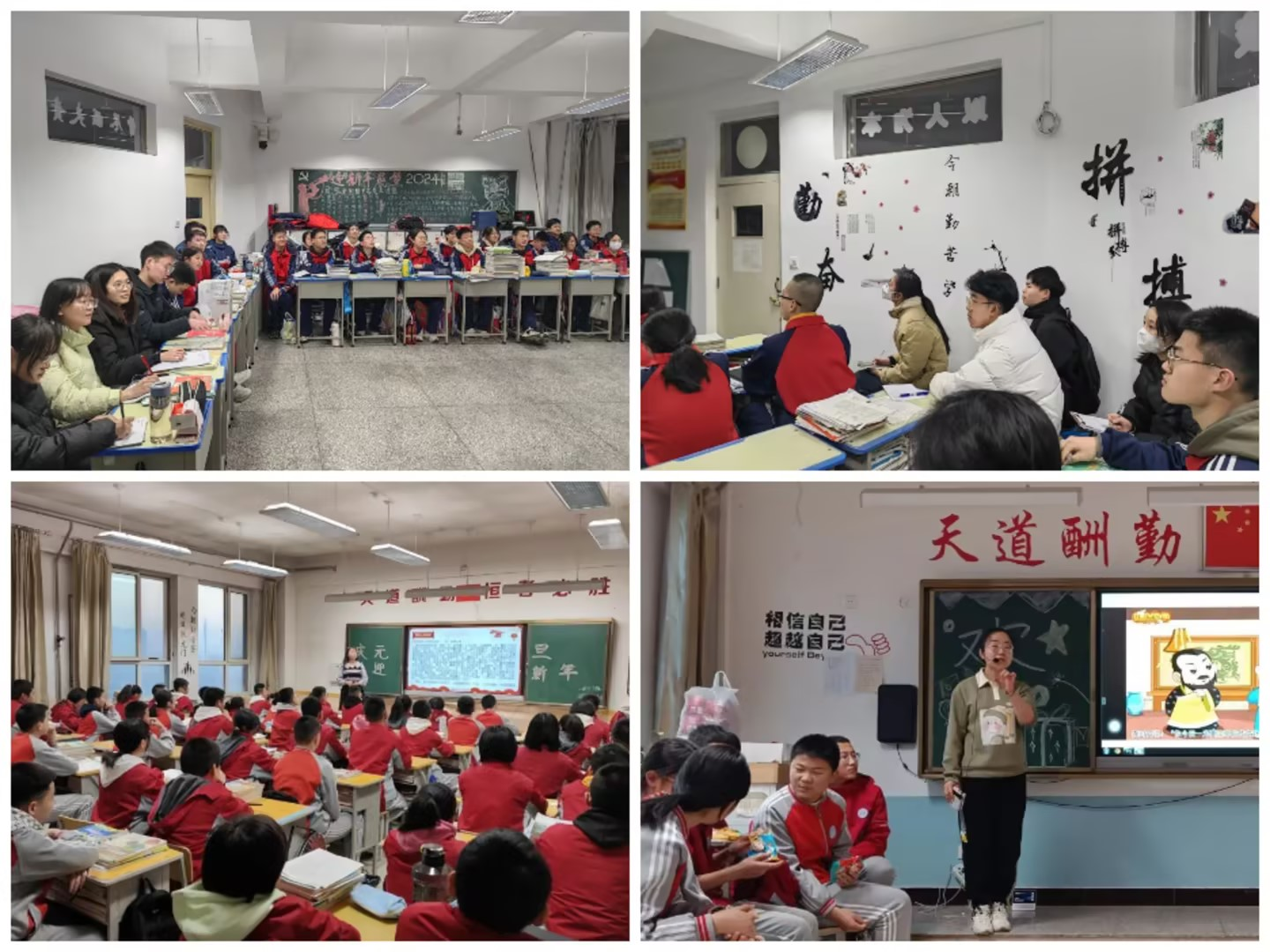初高中班级的学生们一起观看了习近平总书记2024年新年贺词讲话视频,了解了新年、元旦的来历及习俗。学生们回顾了2023年的成长与收获,从刻苦训练的军训到激情四射的秋季田径运动会,从团结一心的跑操比赛到彰显合力的合唱比赛。学生们回顾着过去一年的点点滴滴,分享着得失成败,既有汗水也有欢欣。回顾了2023年的国家大事、家乡的变化、家庭的亲情故事。全体学生展望2024年,立下新的目标,播撒希望的种子,新征程的美好明天鼓舞砥砺奋进的信心。班会后,见习生同班主任和学生们进行了深度交流。