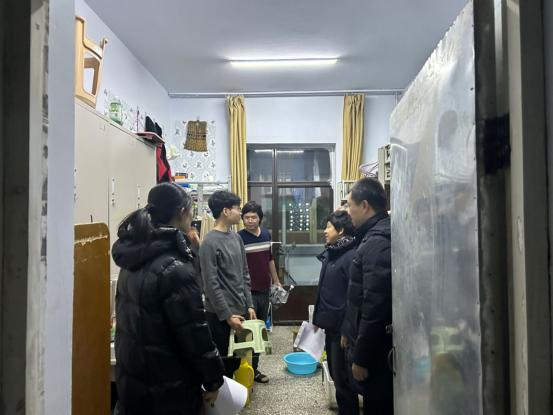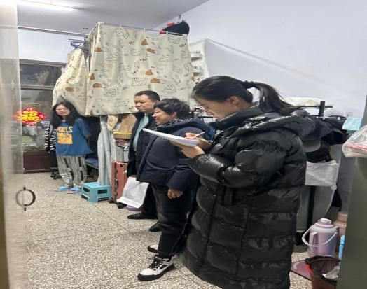 1月21日晚,校学生工作部、后勤管理部联合学院安全检查小组对寒假留宿学生宿舍进行安全检查。中医药健康服务学院副院长(行政负责人)白振军、党委副书记董文华及实习生班主任杜婧对实习生的日常学习和生活进行了询问,并希望各位实习生吸取河南南阳学校火灾事件的教训,对宿舍用电安全时刻谨记心上,严禁大功率电器,保持通风和干净整洁的卫生环境。