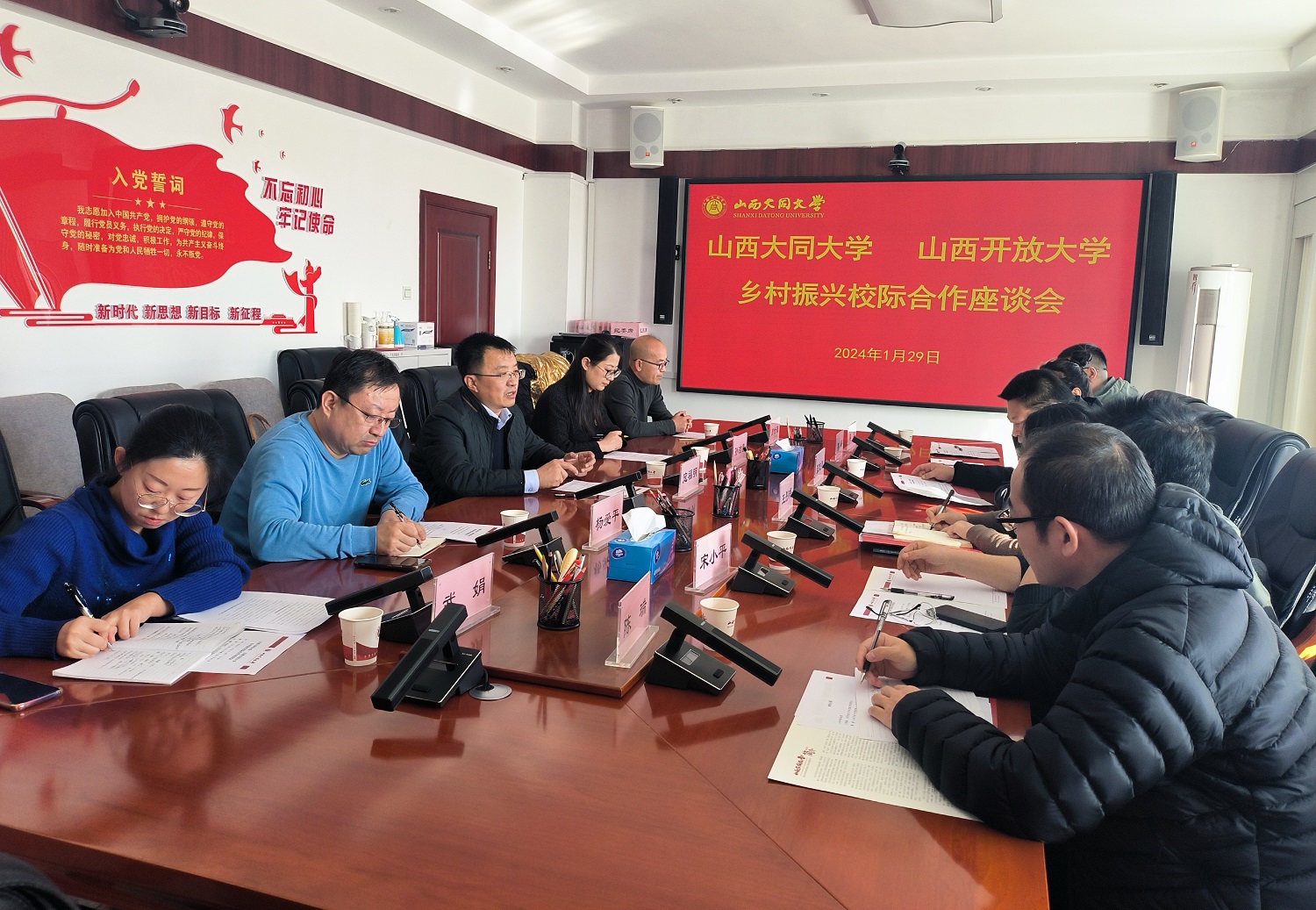 1月29日下午,山西开放大学乡村振兴学院院长王彤梅一行来到大同乡村振兴研究院,就双方开展乡村振兴校际合作进行座谈。校党委副书记、大同乡村振兴研究院院长寇福明出席座谈会。商学院、大同乡村振兴研究院相关同志参加座谈。