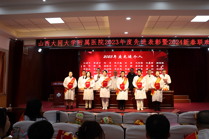 表彰结束后,附属医院2024新春联欢会正式拉开序幕,整场联欢以“金龙迎新 筑梦未来”为主题,生动喜庆,真挚感人,充分展现了附院人爱岗敬业、无私奉献的职业精神。附属医院将继续守初心、担使命、谋发展,勠力同心,谱写附属医院高质量发展新篇章。