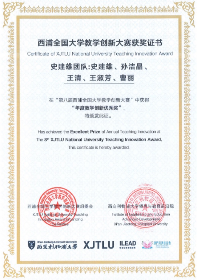 强化课程建设喜获佳绩。学院高度重视师资队伍建设工作,积极鼓励支持教师参与各级各类教学创新竞赛,提升教学水平。“以赛促教、以赛促学、以赛促改、以赛促建”的局面已经初显成效。史建雄教学团队的《创业基础》课程最终在第八届西浦全国大学教学创新大赛中荣获年度教学创新优秀奖,并在大众评审环节总名次位列全国第二。
