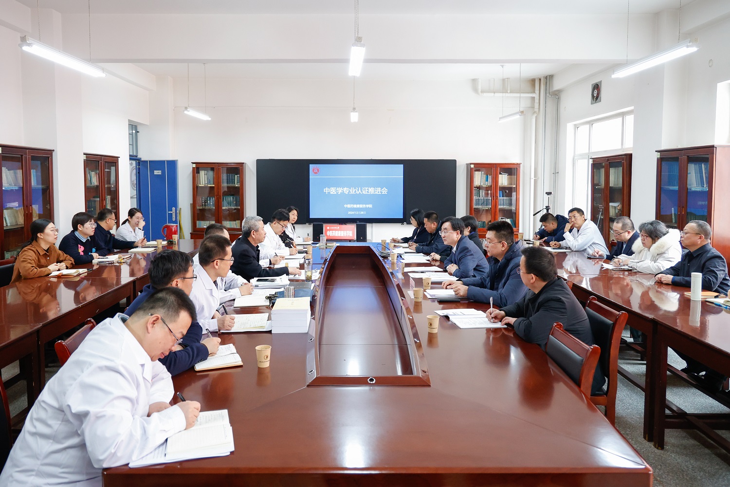 赵水民对专业认证的前期准备工作给予肯定。他指出,中医学专业认证关乎中医人才培养质量,是提升学校中医学专业建设水平和医学教育水平的重要抓手。有关学院、部门要进一步提高站位,将专业认证“短期目标”、审核评估“中期目标”、高水平应用型大学建设“长期目标”有机结合、一体推进,切实提升学校教育教学水平。一要坚持立德树人,持续推进铸魂育人走深走实。要深挖中医学课程思政元素,打造富有中医特色的课程思政案例,加强职业素养教育,充分发挥“场馆育人”作用,以中华优秀传统文化浸润人心,以生命教育辐射带动全校思想政治教育工作。二要紧抓内涵建设,持续推进以评促建走深走实。要坚持全校“一盘棋”思想,加强协作联动,对照指标体系逐项落实,精准凝练认证特色,要进一步实化医学部职能,统筹空间资源、实验平台资源利用和学生教育管理,探索打造“医学社区”。三要深化开放办学,持续推进“大拜访、大访企、大对接”走深走实。要围绕专业认证,主动深入高水平院校学习取经,学院领导班子成员要带头“走出去”,抓机遇、抢资源、争项目,以高质量开放和高水平合作提升专业建设水平,同时要稳步推进中医进社区活动,进一步提高社会服务能力。四要广泛凝心聚力,持续推进高质量党建引领高质量发展走深走实。要深入实施基层党组织建设“八大行动”,全面提升基层党组织建设质量,要将作风建设牢牢抓在手中,坚决破除“八大思想顽症”,持续推进“八大作风”建设,着力提升学院班子的凝聚力、战斗力、执行力,为高质量发展提供坚强政治保障和组织保障。