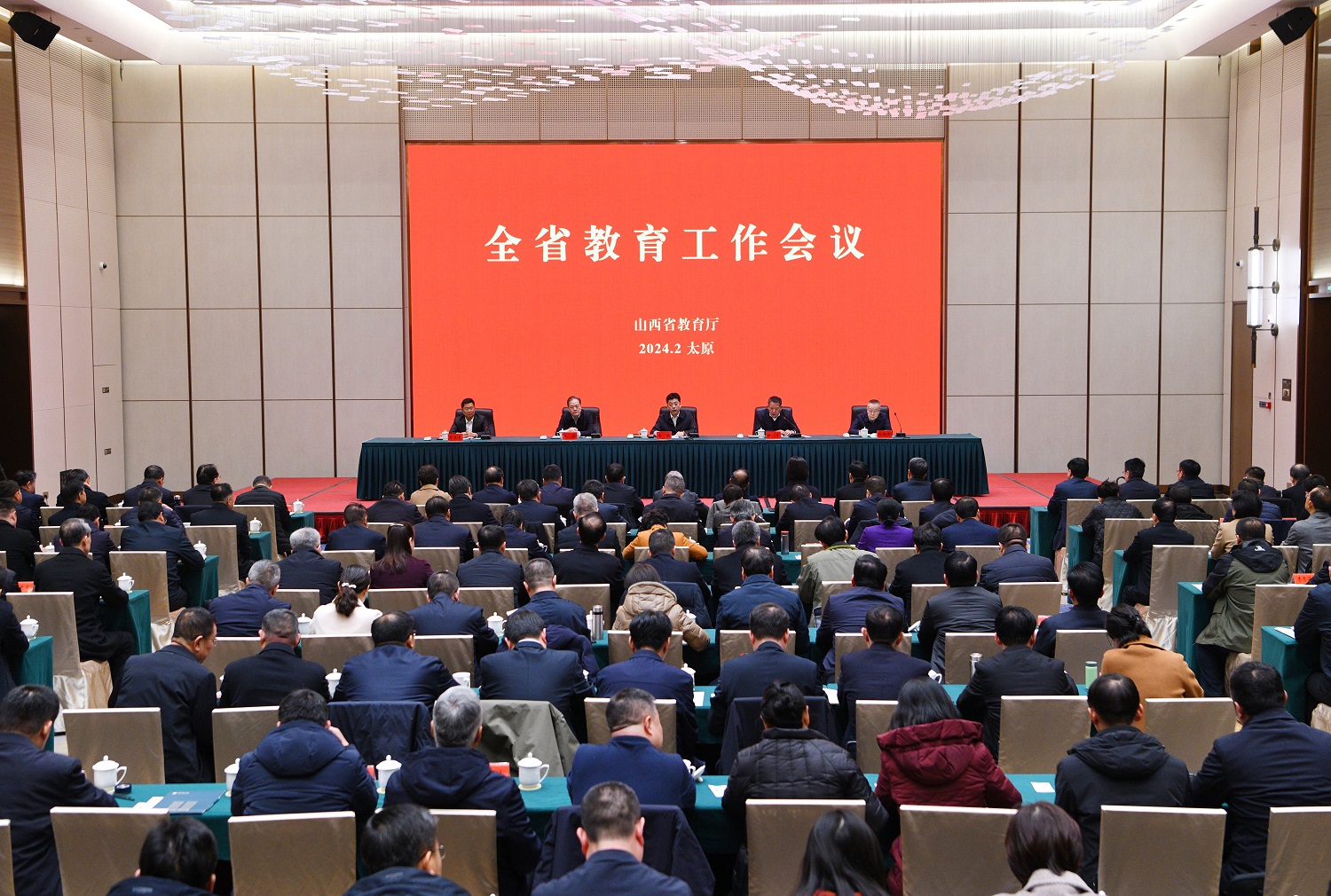 会议要求,2024年是中华人民共和国成立75周年,是实现“十四五”规划目标的攻坚之年,是教育强省建设的开局之年。要坚持稳中求进、以进促稳、先立后破,夯实“稳”的基础,增强“进”的动能,树立“破”的勇气,提高“立”的质效,全力确保教育强省建设高标准开局、高质量推进。一是以党的教育方针为引领,确保教育领域始终成为党的全面领导的坚强阵地。持之以恒健全完善工作体制机制,持续发力推动党建质量提升,驰而不息推进全面从严治党。二是以五育并举为引领,守正创新落实立德树人根本任务。坚持不懈用习近平新时代中国特色社会主义思想铸魂育人,启动实施立德树人工程,促进学生全面健康发展。三是以基点定位为引领,统筹推进基础教育扩优提质。着力推进学前教育优质普惠发展、义务教育优质均衡发展和普通高中优质特色发展,持续巩固深化“双减”成果,大力规范民办义务教育健康发展,开展好新时代中小学科学教育促进行动。四是以达标提质为引领,加快建设山西特色现代职业教育体系。持续推进职业学校办学条件达标工程,大力支持职业本科和高水平职业学校率先发展,不断深化产教融合,打造更多山西职业教育品牌。五是以百亿工程为引领,强化凸显高等教育龙头作用。全面加强高层次人才引育,持续推动高校布局优化,大力提升学科建设质量,持续推动专业优化调整,系统推进高校有组织科研和有组织服务。六是以教育家精神为引领,培养造就高素质教师队伍。做好第40个教师节宣传庆祝活动,优化完善教师管理体制,全面强化师德师风建设。七是以改革创新为引领,充分激发教育领域发展活力。持续深化高考综合改革和新时代教育评价改革,深入推进智慧教育建设,有力支撑全民终身学习,持续扩大教育交流合作水平。八是以支撑保障为引领,稳步推动教育事业行稳致远。全力抓好经费、督导、法治、安全、就业等五项保障,为教育事业发展提供有力支撑。